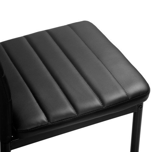 【商品仕様】「材質」座面・背もたれ/張り材:合成皮革PUレザー 内材:ウレタンフォーム 脚:スチール(ラッカー塗装)「重量」約4.2kg 「サイズ」サイズ:(W)幅40cm×(D)奥行き39.5cm×(H)高さ96cm、床から座面までの高さ:約45cm 「耐荷重」約100kg。【ご注意】実寸サイズを測っているため多少誤差がでる場合があります。
