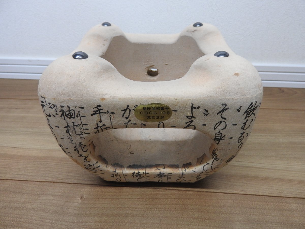 茶道具 煎茶道具 七輪 陶器 飛騨 になります。 炭汚れ、変色あり使用感ございます。 【サイズ】 幅 15㎝ 奥行 15㎝ 高さ 12.5㎝ 写っているものが全てです。 状態も含めて写真にてご確認下さい。 | ||||
