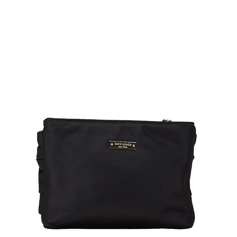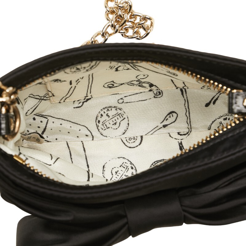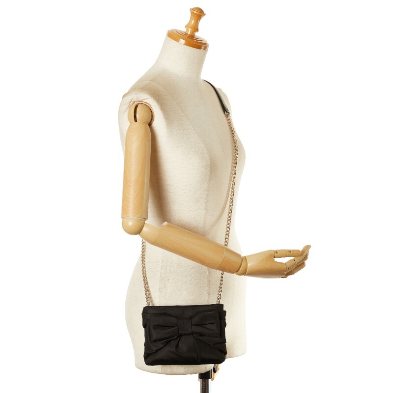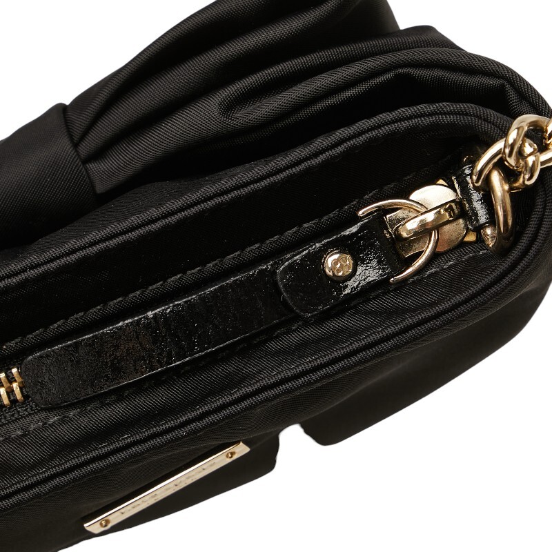 ケイトスペード リボン モチーフ 斜め掛け チェーン ショルダーバッグ ブラック ナイロン レザー レディース Kate Spade 【中古】