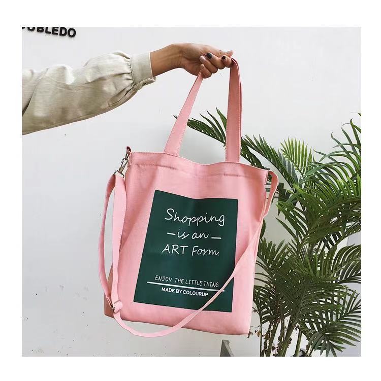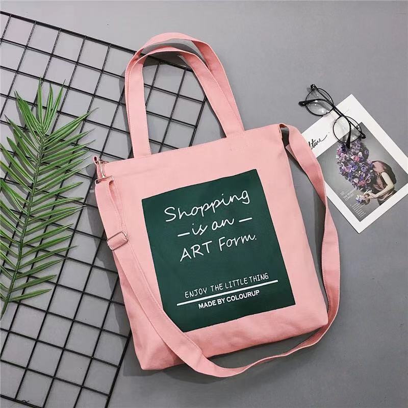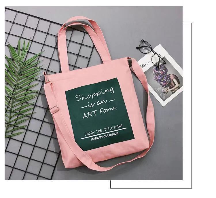 ピンク緑 オシャレな帆布ショルダーバッグ トートバッグ ヘアゴム2点付き 新品