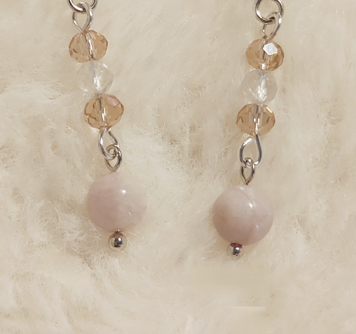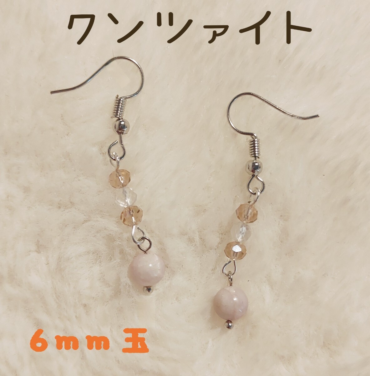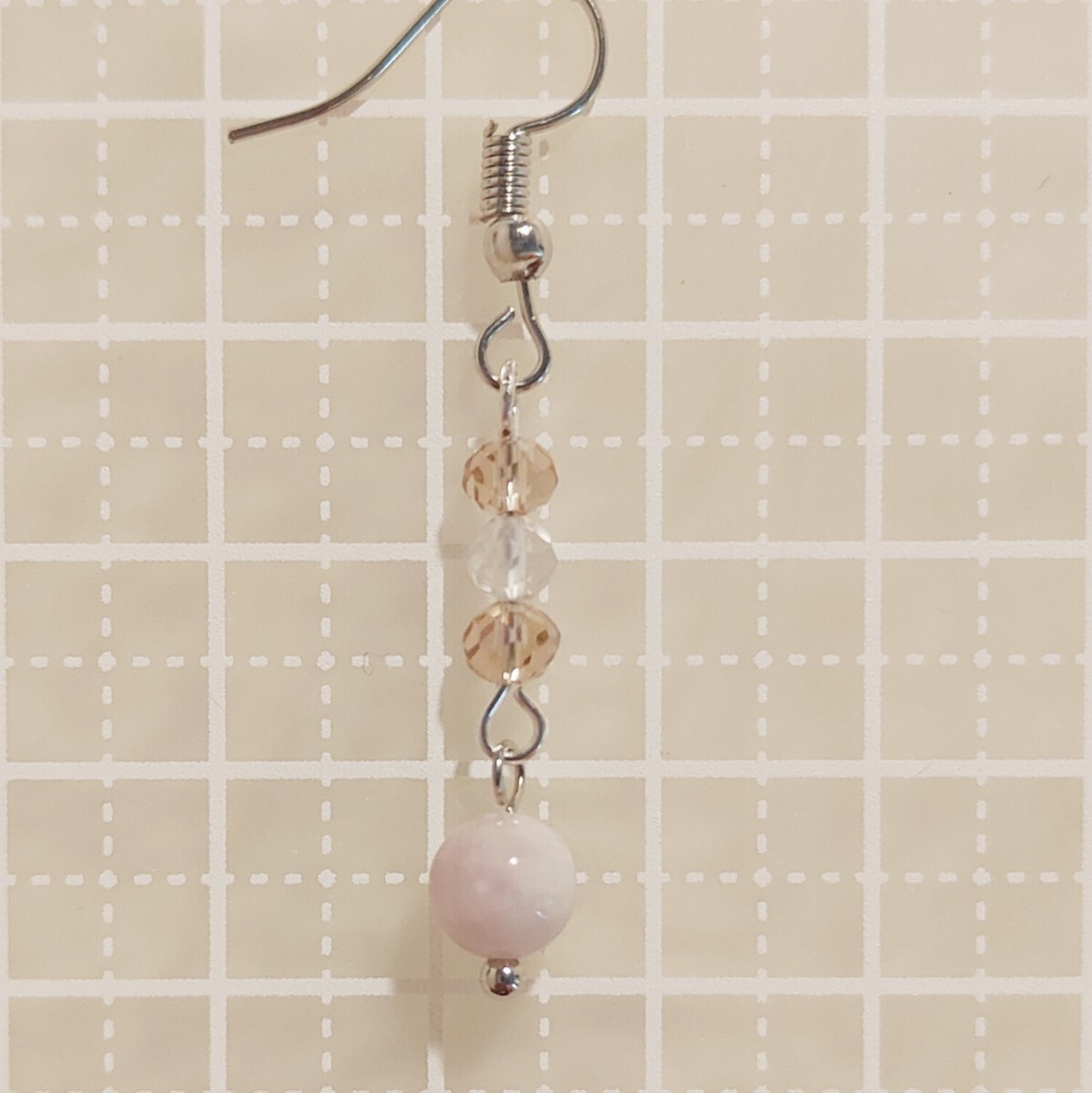 6mm玉のクンツァイト、4mm玉の水晶にガラスビーズを合わせたパワーストーンピアスorイヤリングです(=^・^=)