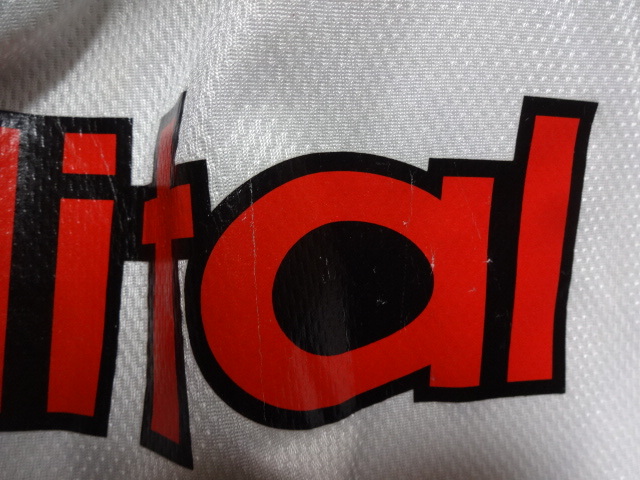 新品未使用品タグ付きですが、スポンサー部分にダメージあります。わずかな色移りあります。