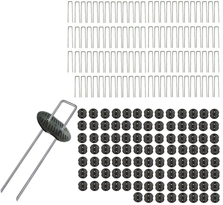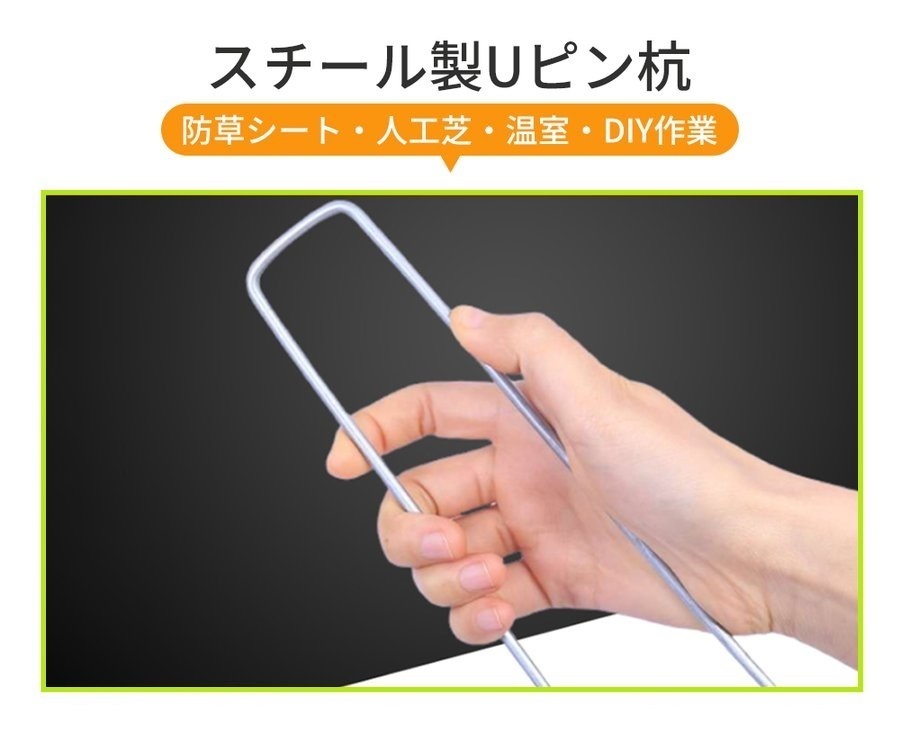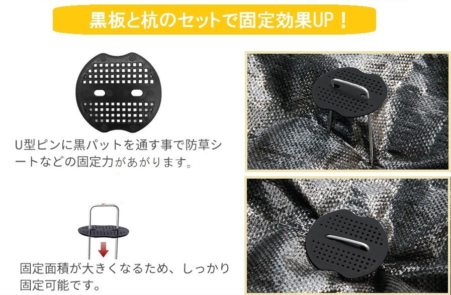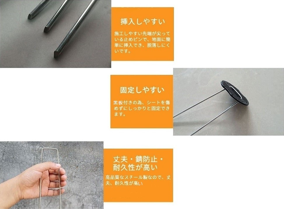 防草シートを固定するための杭です。黒丸付きの為、シートを傷めずにしっかりと固定します。不織布、マルチ、その他シート、ネット類の止め杭にも適しています。