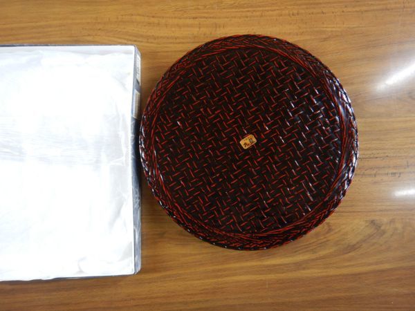 丸籃 籃胎漆器 丸盆020801 黒30H2CM 未使用 九州 福岡 久留米