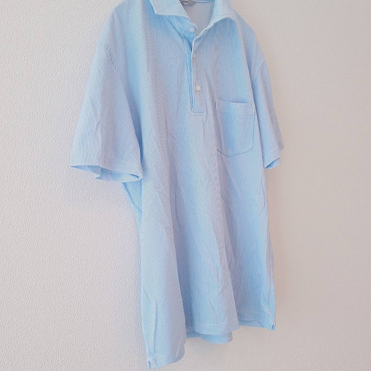 美品 UNIQLO ユニクロ トップス ポロシャツ ストライプ 半袖 水色×白 L メンズ |