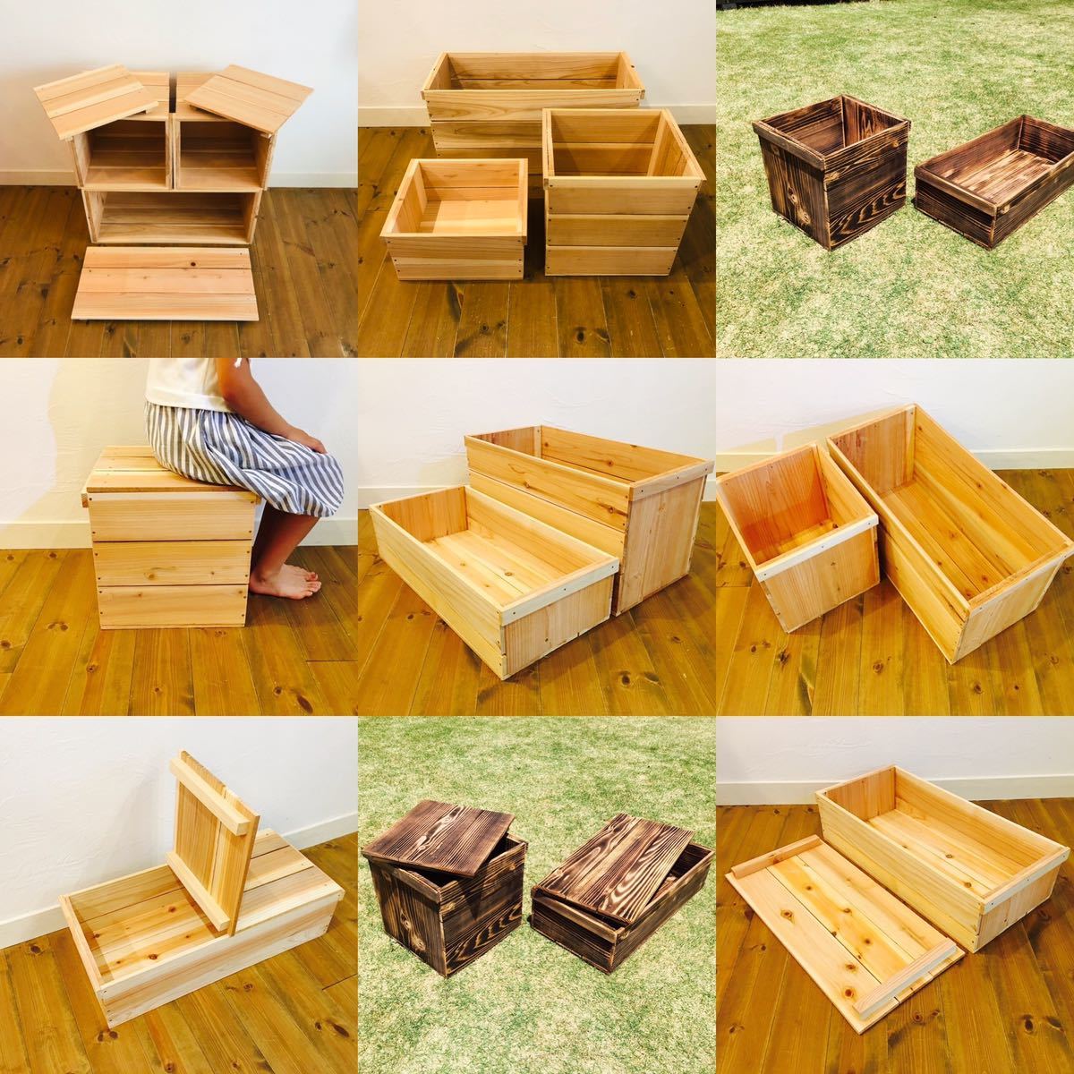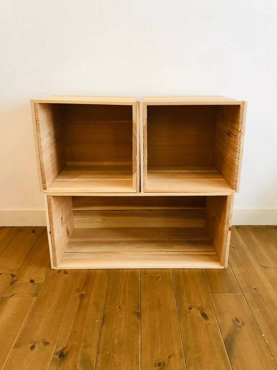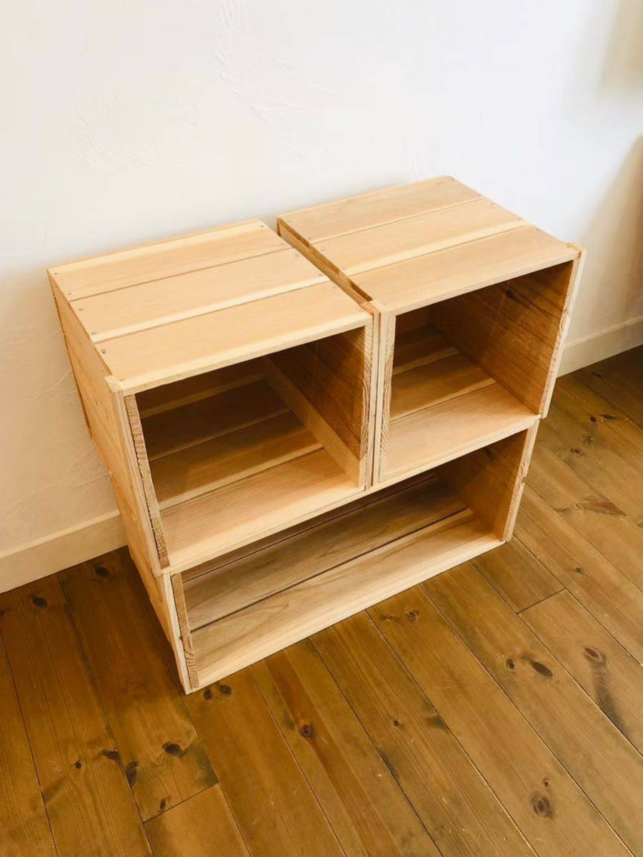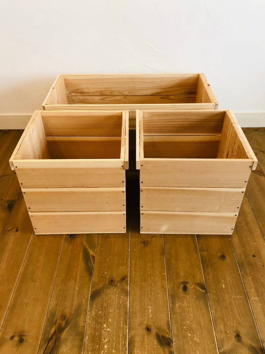 新品ですので、中古のりんご箱と比べて経年による破損、汚れ、りんごの匂い、マジックやチョーク汚れはありません。
