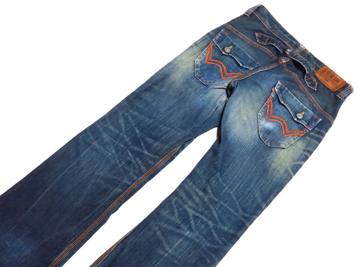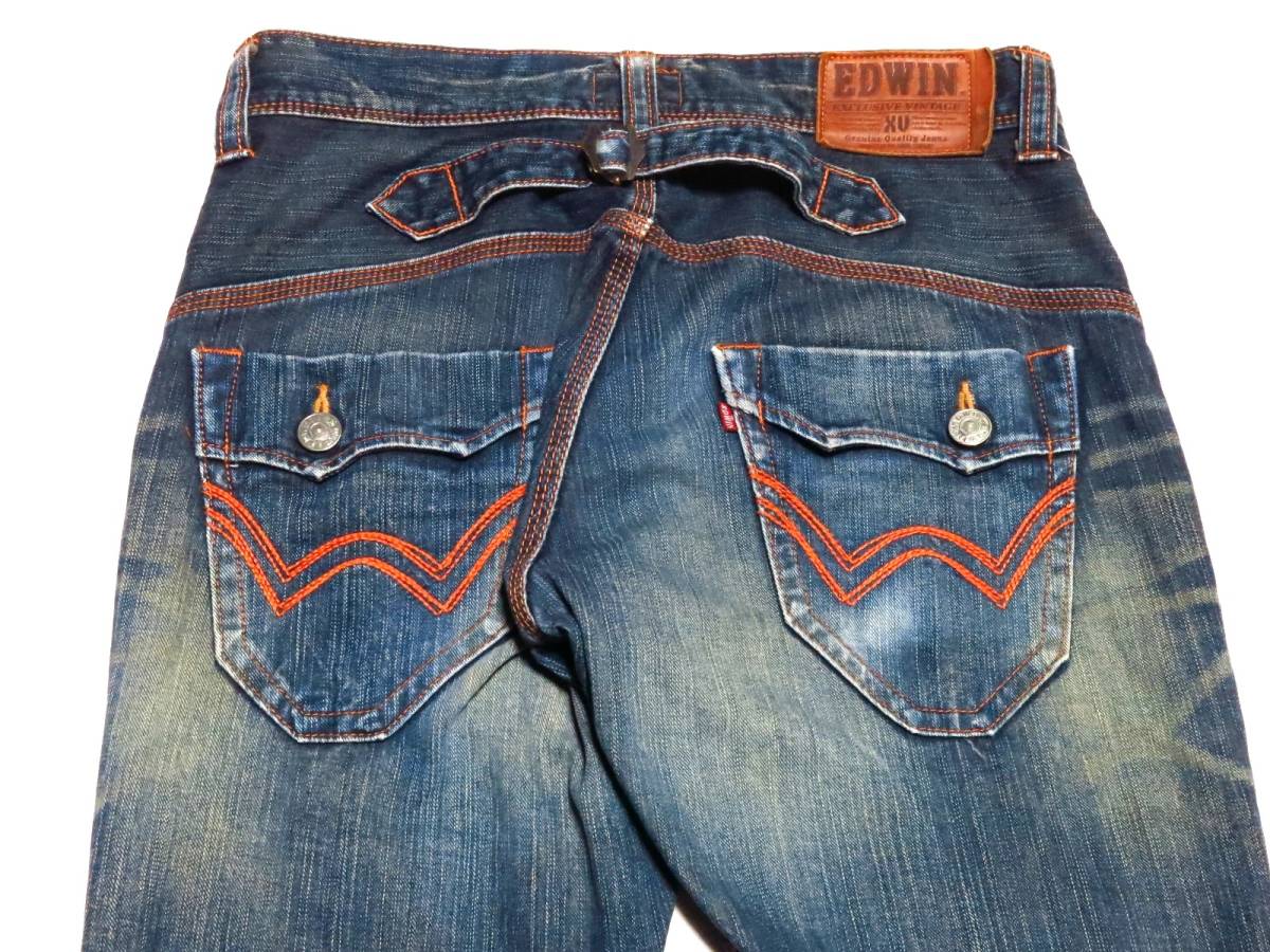 EDWIN エドウィン デニムパンツXV フレア シンチバック 裾上げ無し サイズ32(W実寸約86cm) ※実寸W33相当  (出品番号1072)