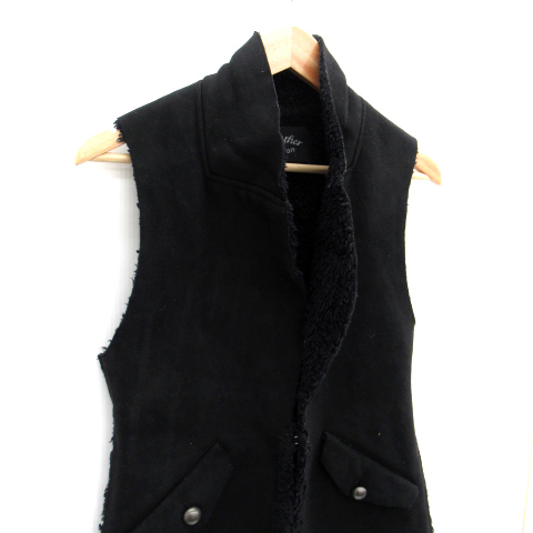 アナザーエディション ANOTHER EDITION アローズ ジャケット ベスト ミドル丈 ショールカラー スエード調 裏ボア 黒 ブラック レディース