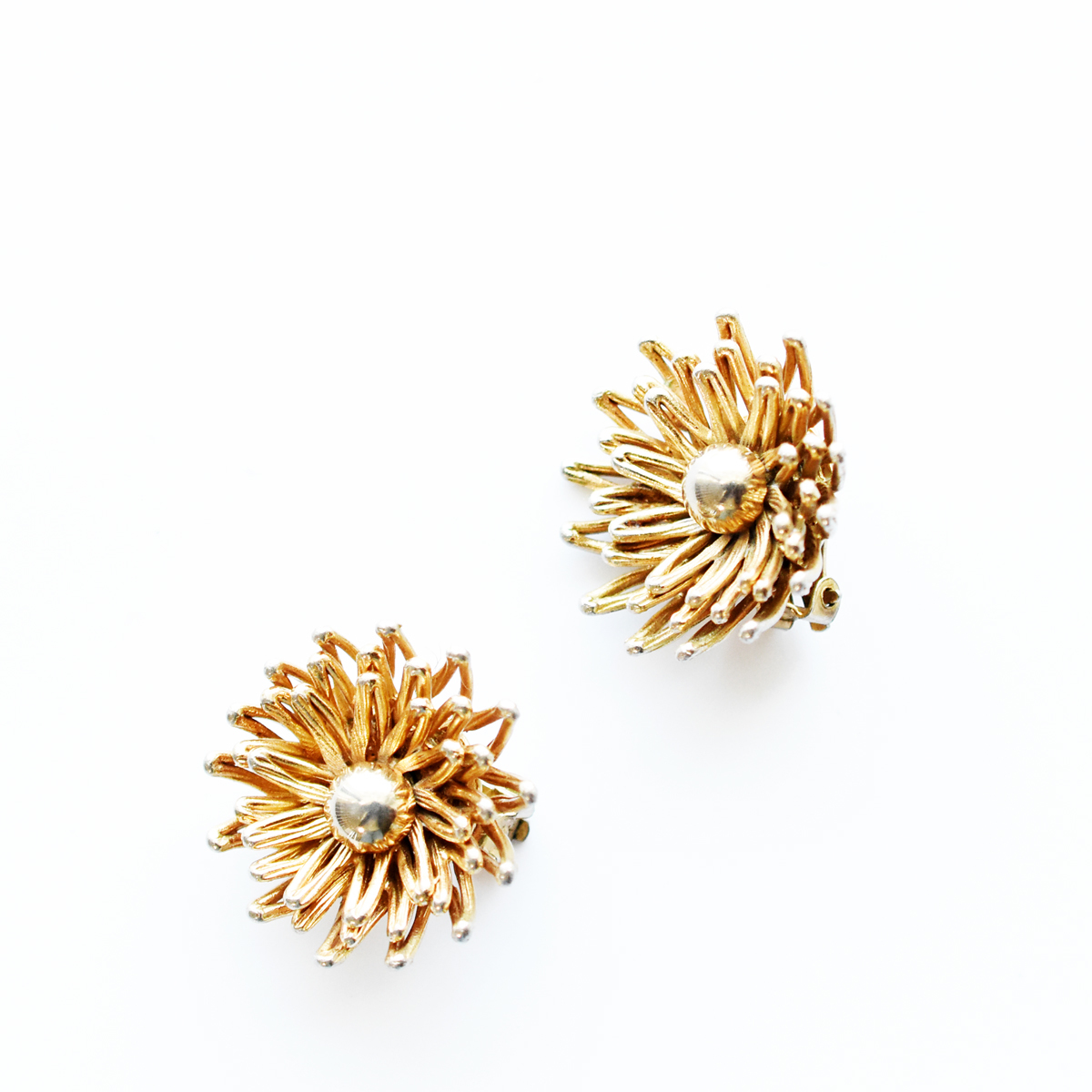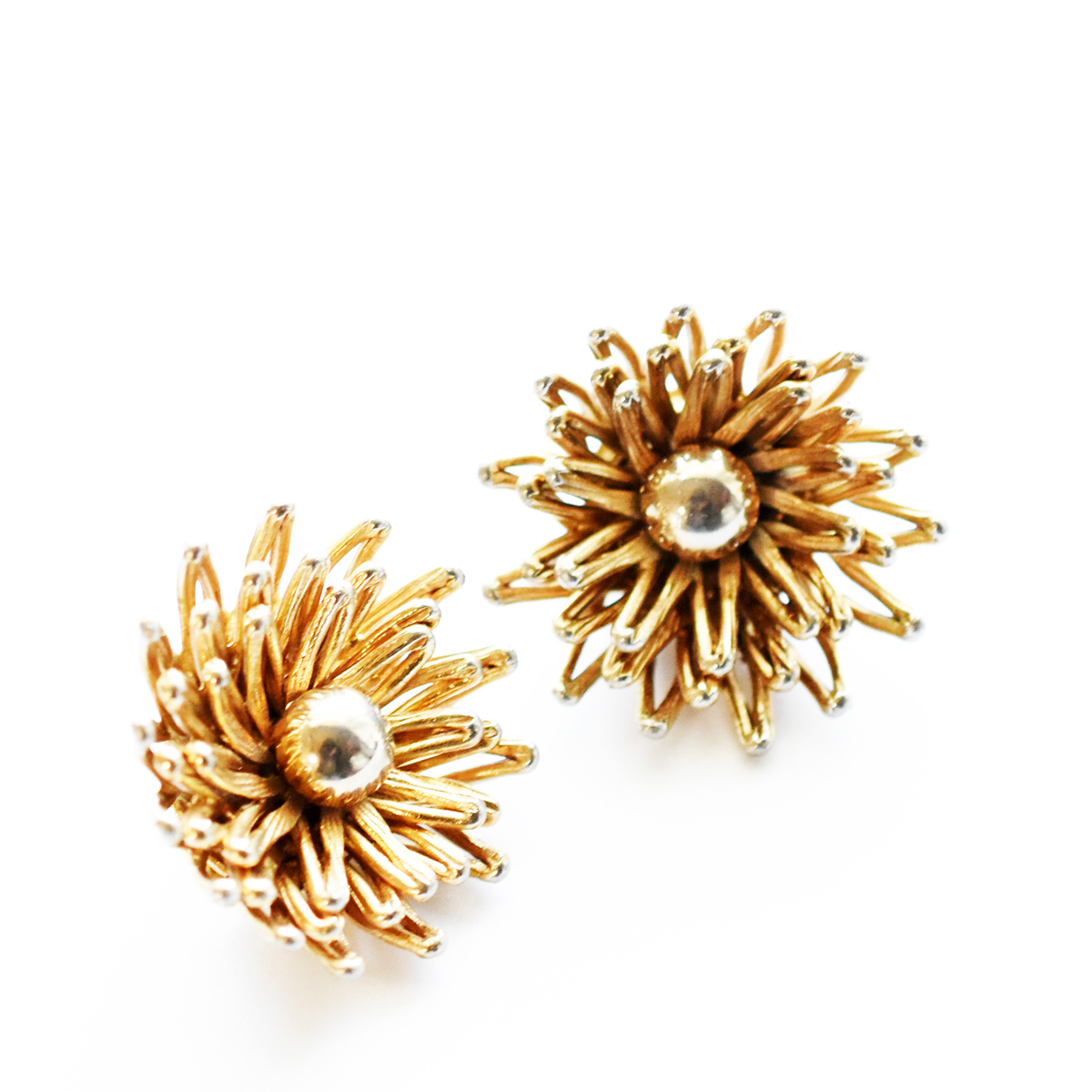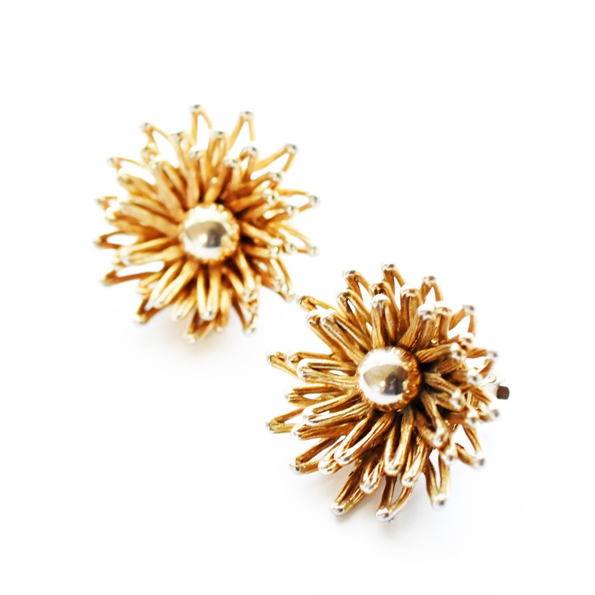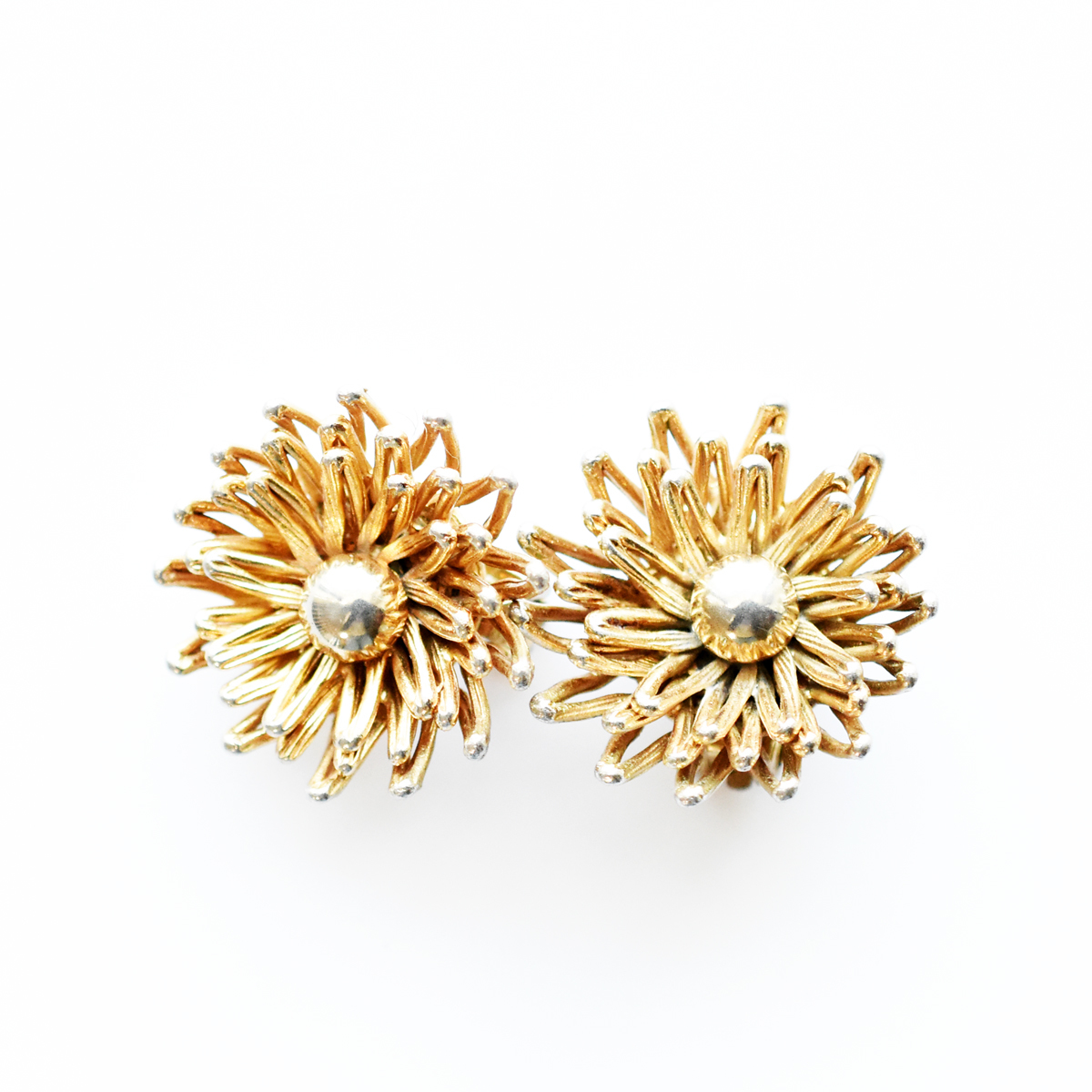 1950年代 リスナー ゴールドメタル フラワーモチーフ ヴィンテージイヤリングです。