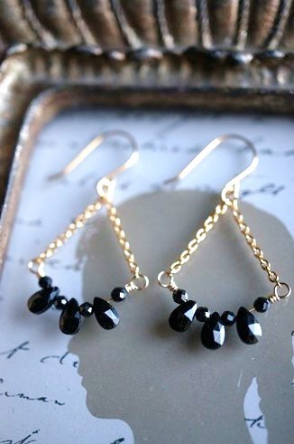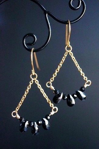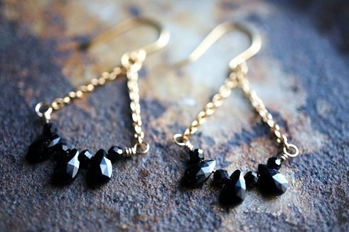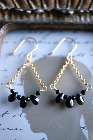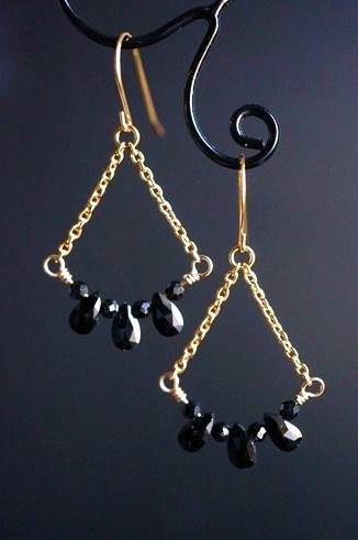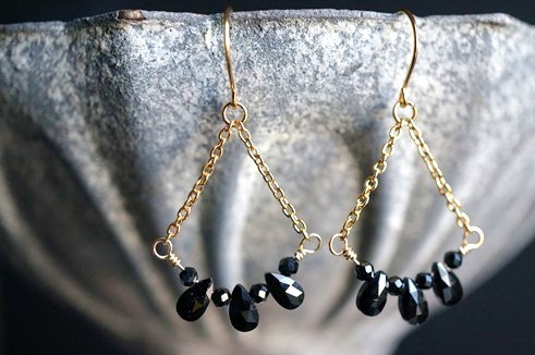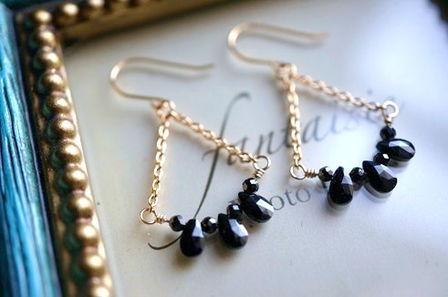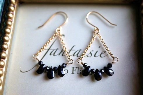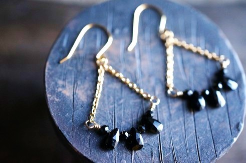 K14GF ピアス 2201 ブラックスピネル 天然石・パワーストーンピアス トライアングルピアス ブラックジュエリー