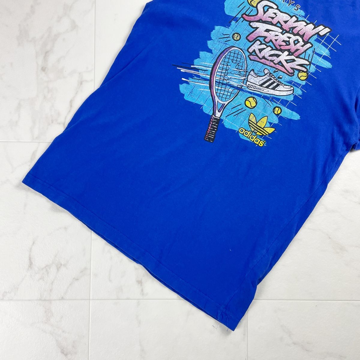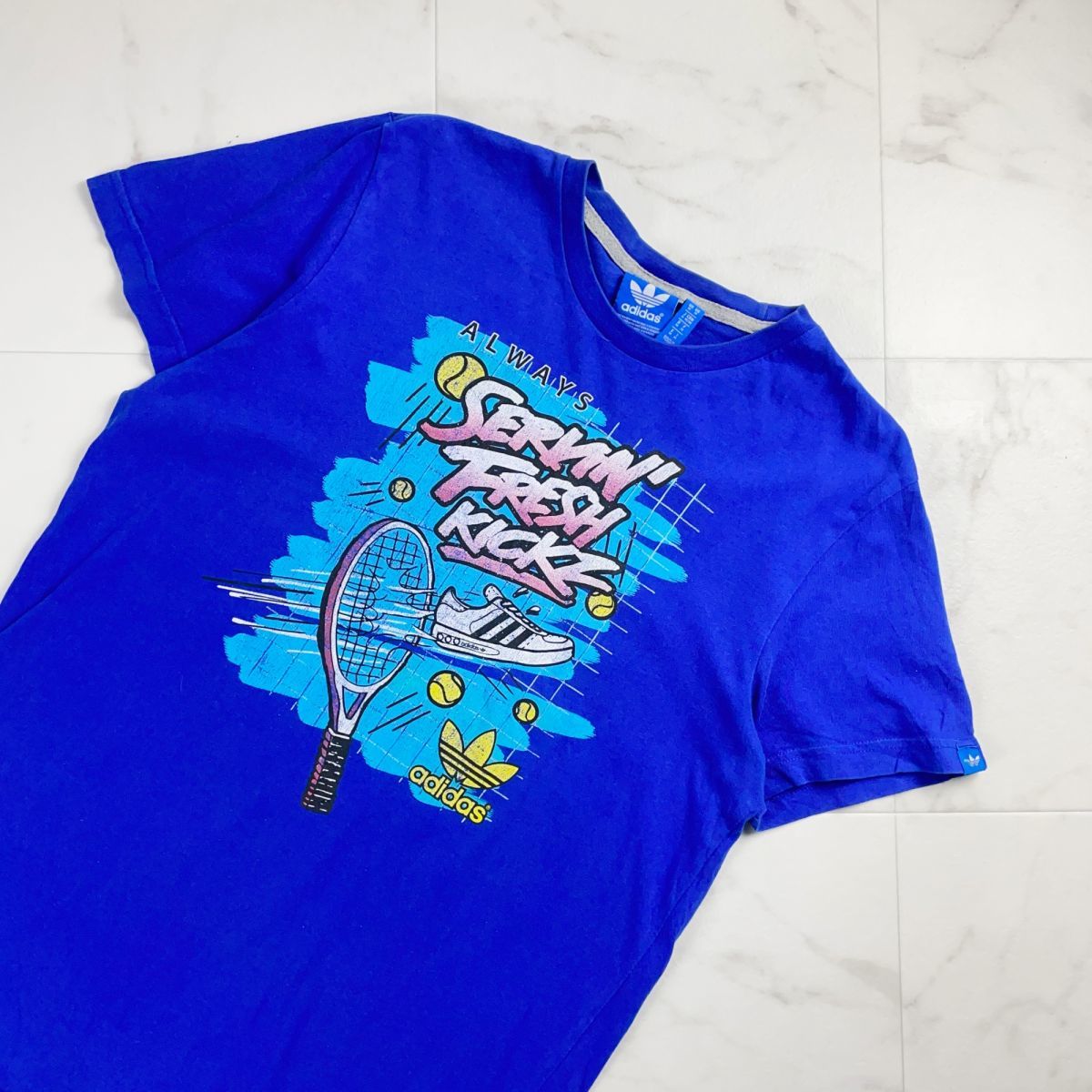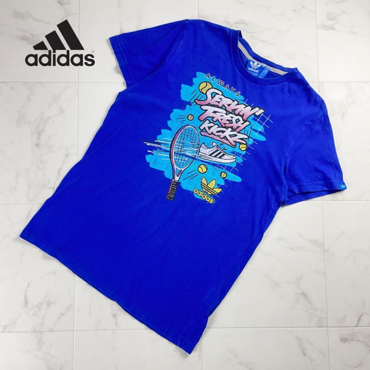 adidas アディダス プリントTシャツ 半袖カットソー トップス メンズ 青 ブルー サイズM*MC1065