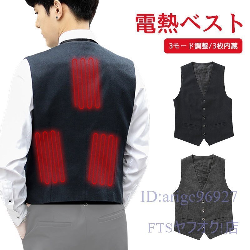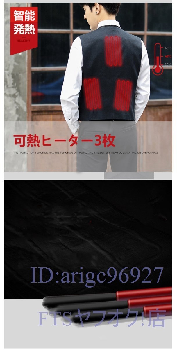 X170☆電熱 ベストメンズ スーツ 電熱ベスト ヒートジャケット服ジャケット 電熱ジャケット ビジネス Vネック加熱ベスト スーツ S