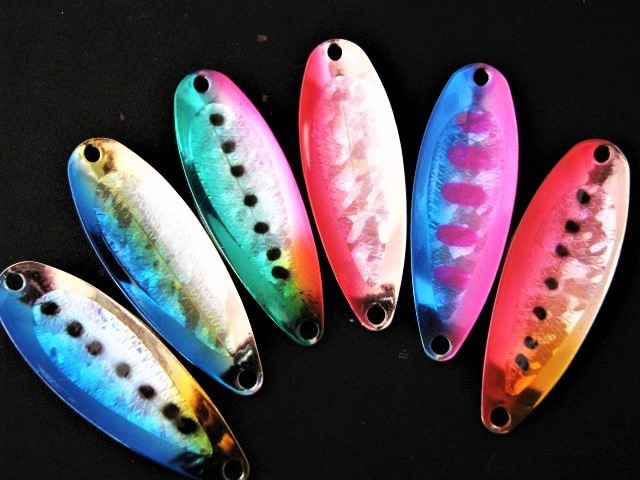 | 商品説明 | 世界初の凹面塗装スプーン 新品6色セット パッケージ無しで、1枚ずつビニール袋入りです。 ★厚さ違い【15g】【22g】【3サイズセット】も出品中 ★ 訳あって市場では入手が困難の状態になってしまいました。 本流の樺太マス、サクラマス、イトウ、アメマス、レインボーに! ソルトのヒラメ、マゴチ、メッキ、シイラ、青物に高実績!! ■メーカー: noby’s blue ■商品名: 鱒一番 【Tracer type】 ■自重: 18g ■サイズ: 全長: 約 60mm 全幅: 約 20.5mm 厚さ: 約 2.6mm ※一般的なスプーンより厚目です。 ※厚さ違い 【15g】【22g】【3サイズセット】も出品中! ■カラー: GIWS グリーンイワシピンク ※凸面は全てシルバーのハマード PIWS ピンクイワシ IWS イワシ BYA ブルー ヤマメ SR スケールレッドピンクライン BGY ブルーグリーンイエロー ■希望小売価格: \880 税込 ※6枚で¥5280相当分 本流の重い流れにも浮き上がりにくい肉厚シェイプ.。 従来は攻めきれないポイントの攻略を可能にしました。 その他は画像のとおりです。 ご不明な点は入札前にご質問をお願いします。 ★厚さ違い 15g、22g、超特価3サイズフルセットも出品中★ ★★ 他にも多数出品しておりますので宜しければご覧下さい。 ★★ ★★ ルアー500個以上出品中!要チェック!★★ ※ほとんどが一般市場で入手困難な旧モデル未使用新品です。 ※出品者の出品リストよりお進み下さい。 |