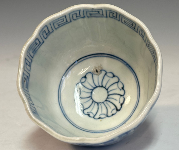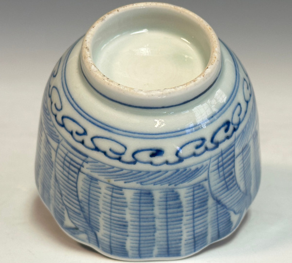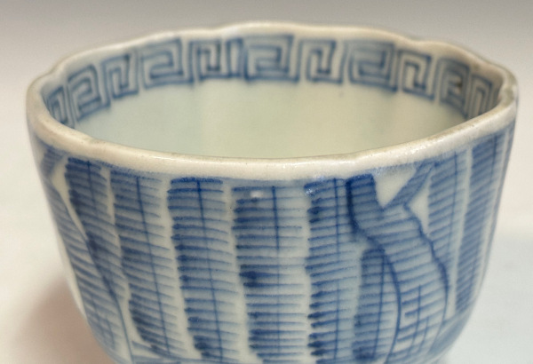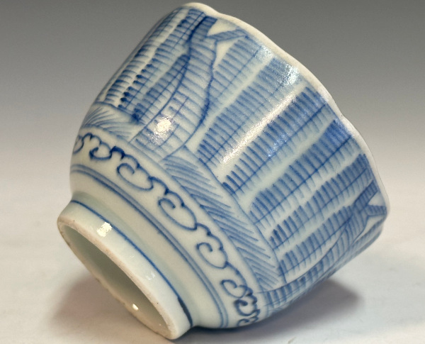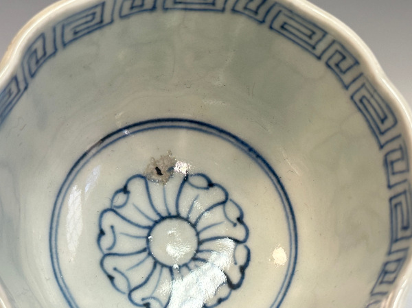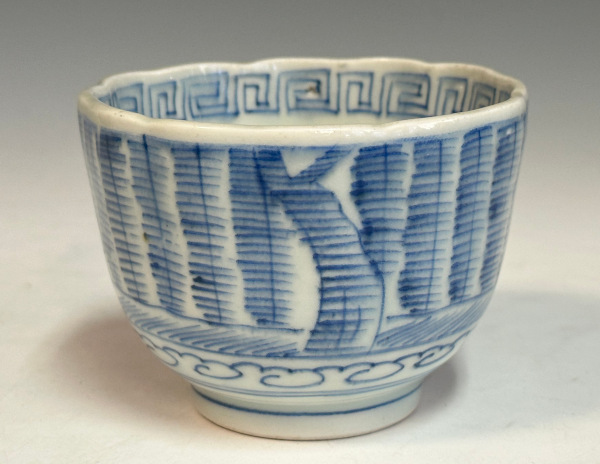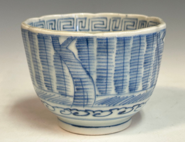 古伊万里、染付樹木文輪花湯呑茶碗です。時代は江戸時代。古いものですので、汚れ、スレキズ、フリモノ、釉切れなどございます。状態の詳細は画像にてお確かめください。箱は付いておりません。お分かりの方、宜しくお願いいたします。