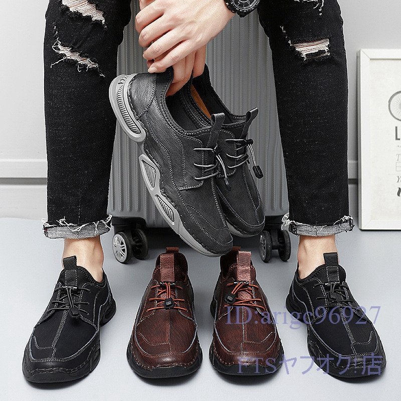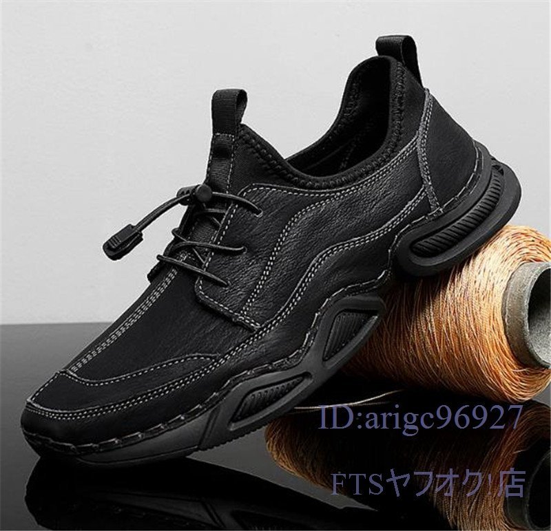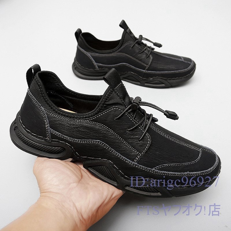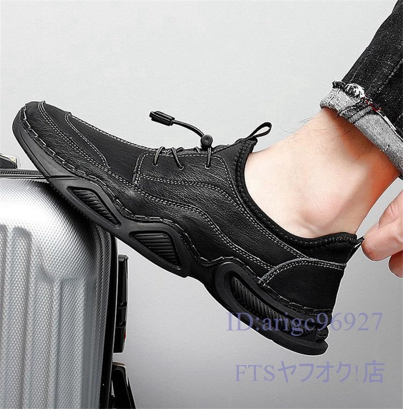 T868☆新品スニーカー メンズ ドライビングシューズ カジュアル スリッポン アウトドア 軽量柔らかい紳士靴 黒【24cm-28cm選択】