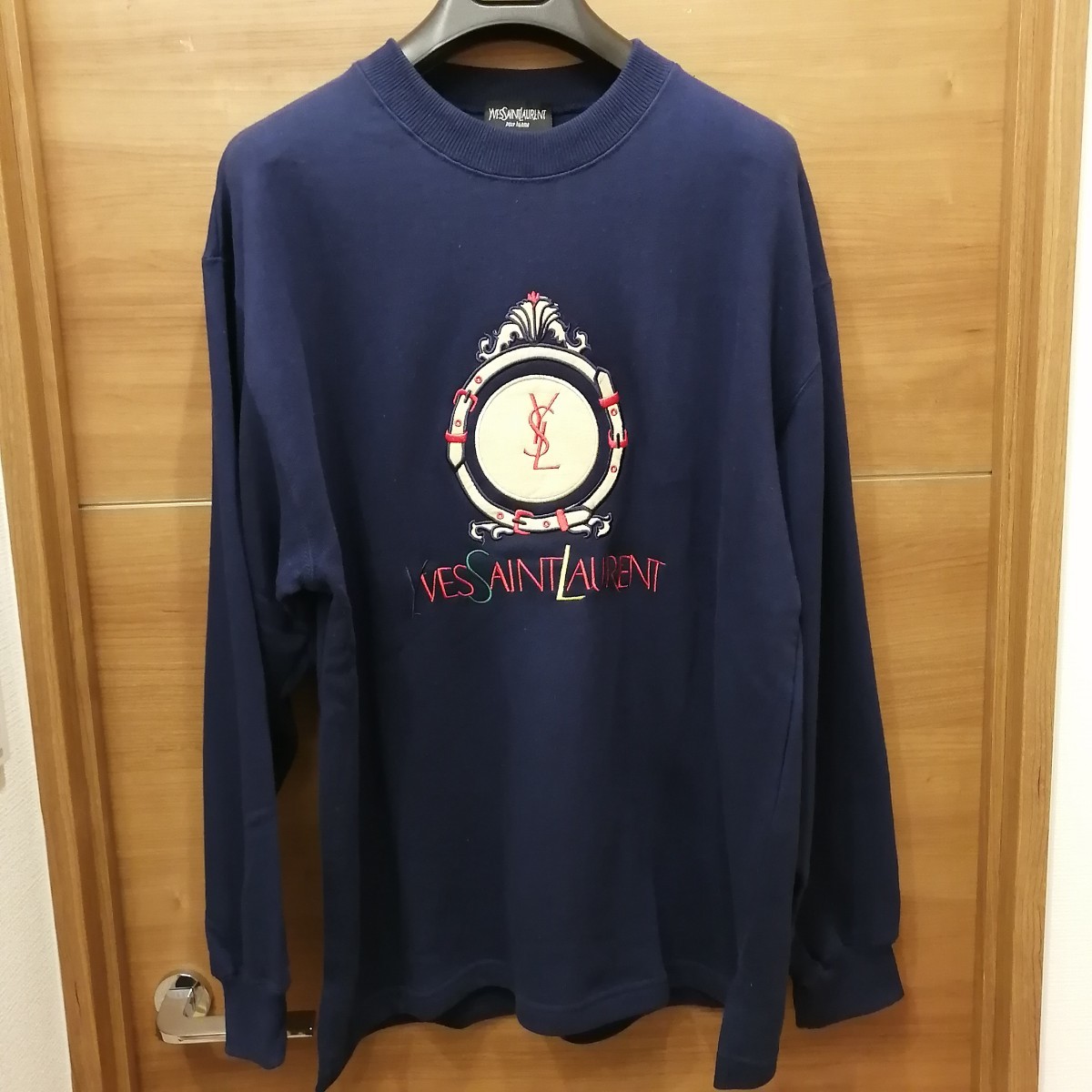 90s YvesSaintLaurent pour homme YSL イヴサンローラン スウェット トレーナー ワッペン 刺繍 ヴィンテージ デカロゴ ビック イタリア製の出品となります。