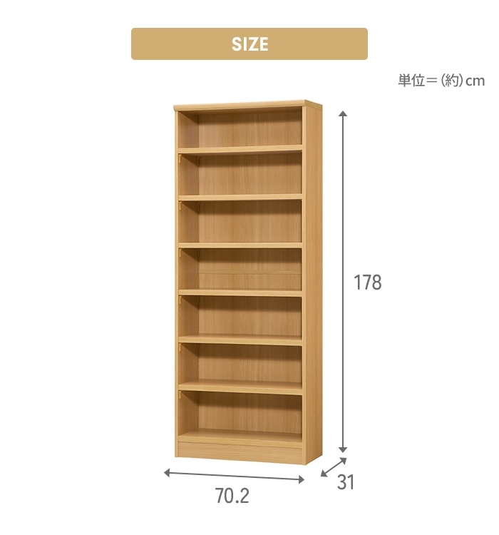 | 本棚 7段 ブックシェルフ 幅71 高さ180 収納棚 フリーラック 多目的ラック 漫画 コミック 本収納 小物置き ディスプレイ |