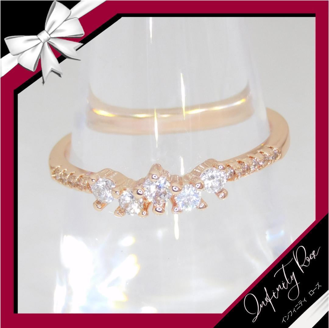 (R048P)21号 ピンクゴールドシャンデリア煌めく細リング 高価爪留指輪