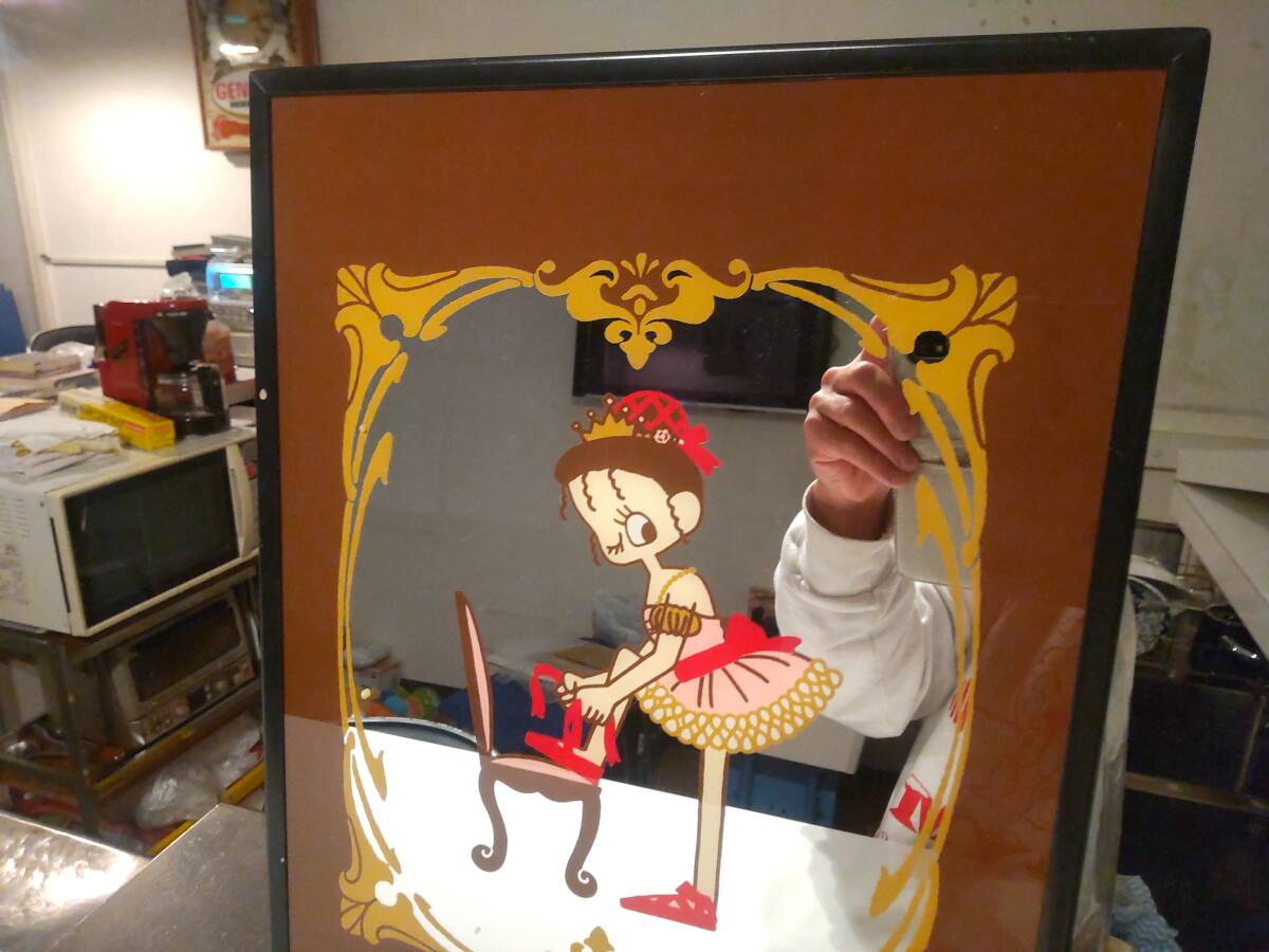 昭和レトロ★80年代★日本製★当時物 美少女 Lemon Village レモンビレッジ パブミラー インテリアミラー アートミラー 壁飾り バー 壁掛け 看板