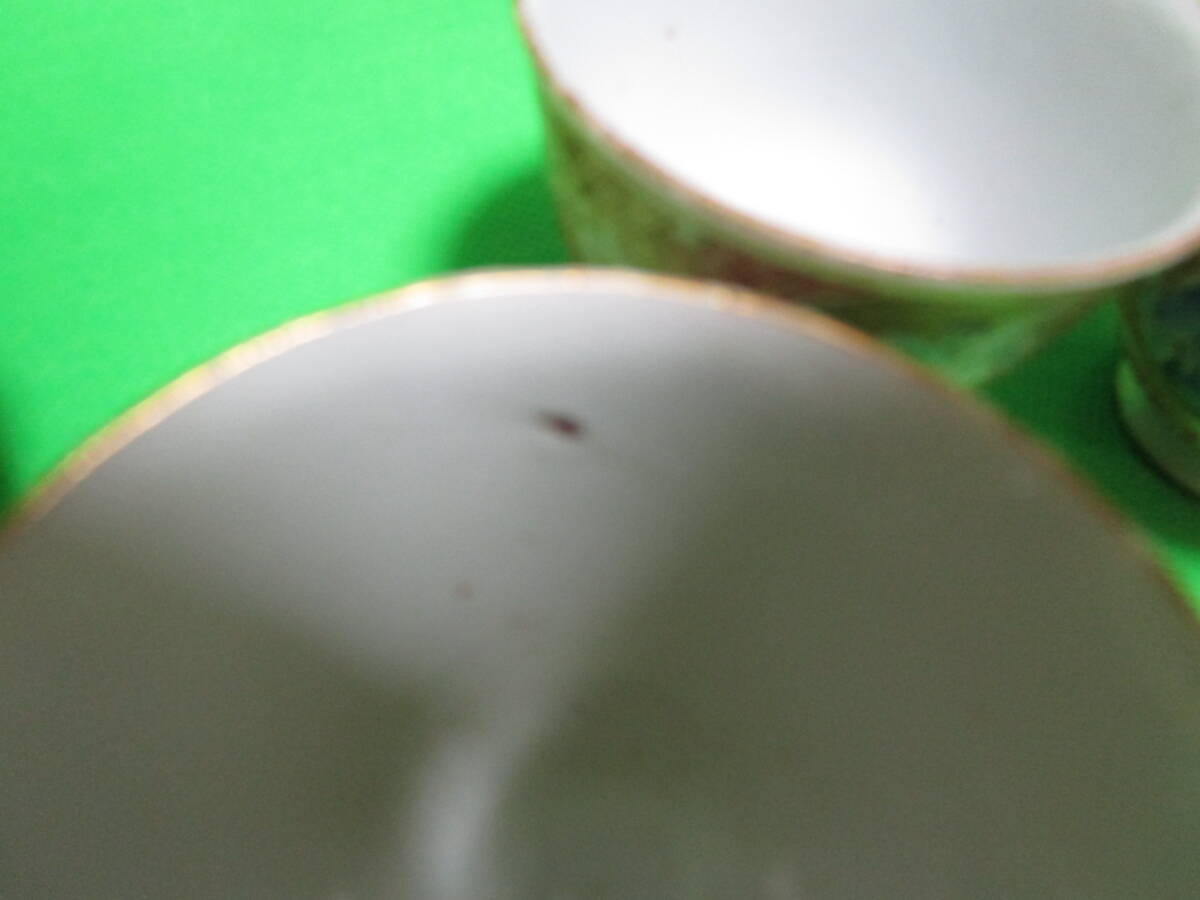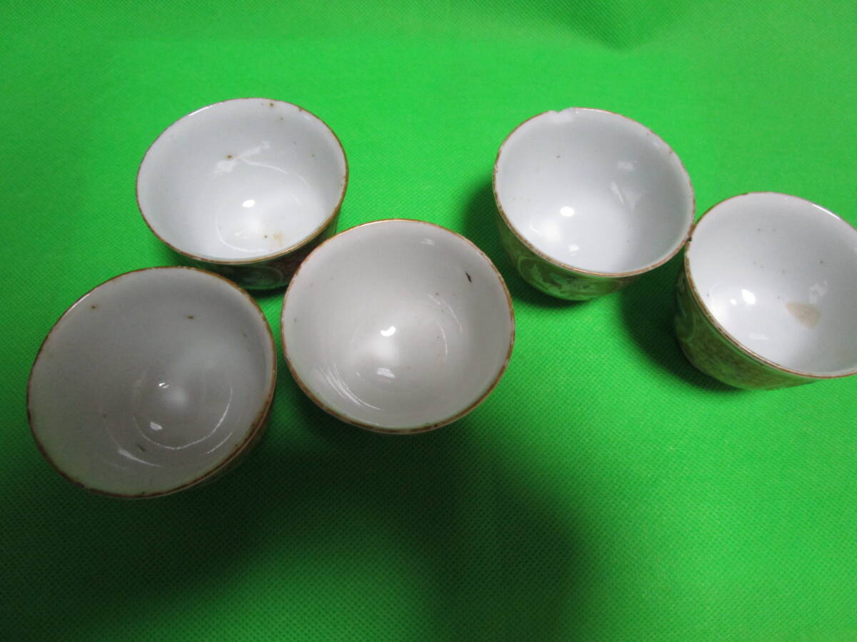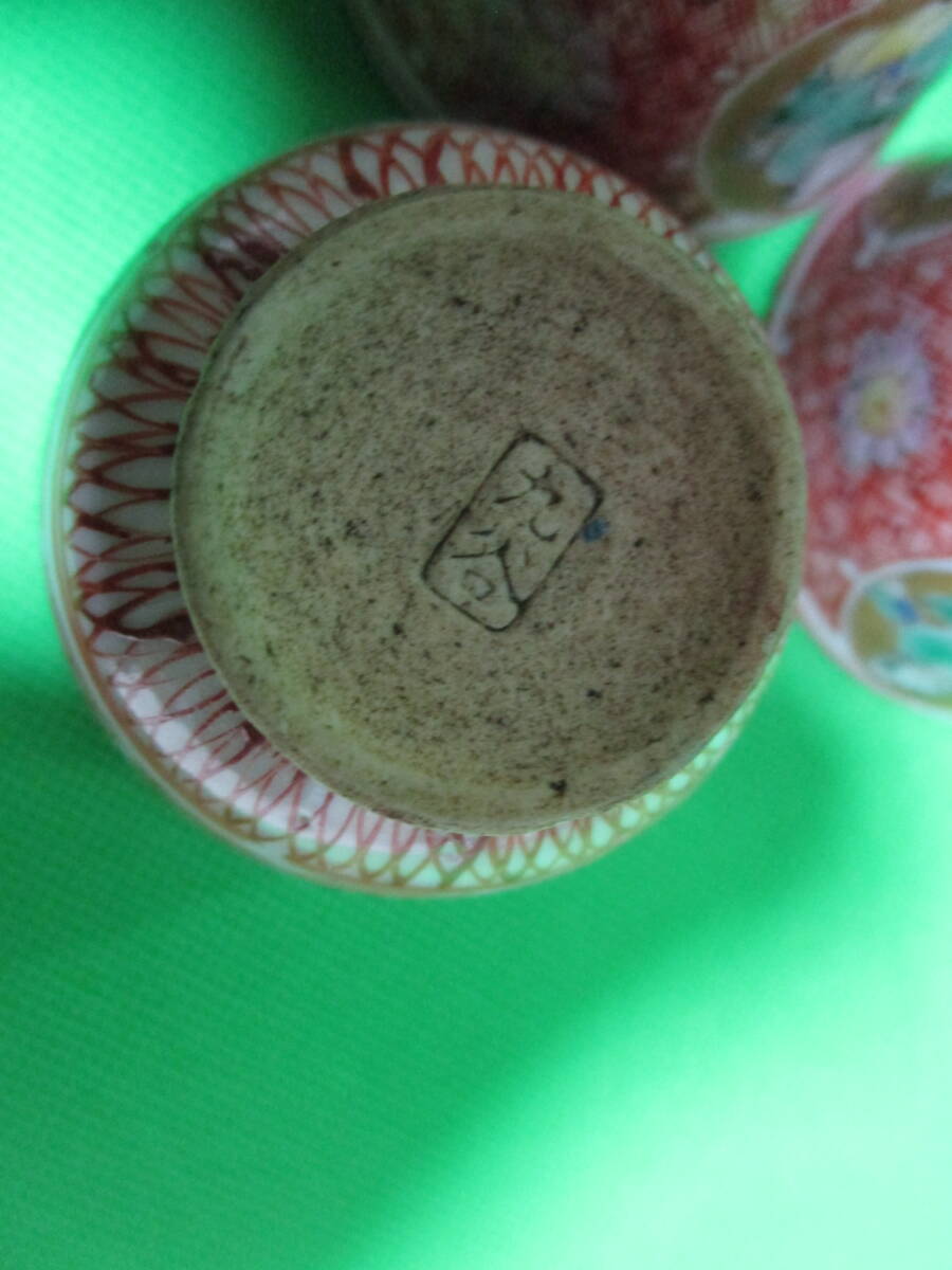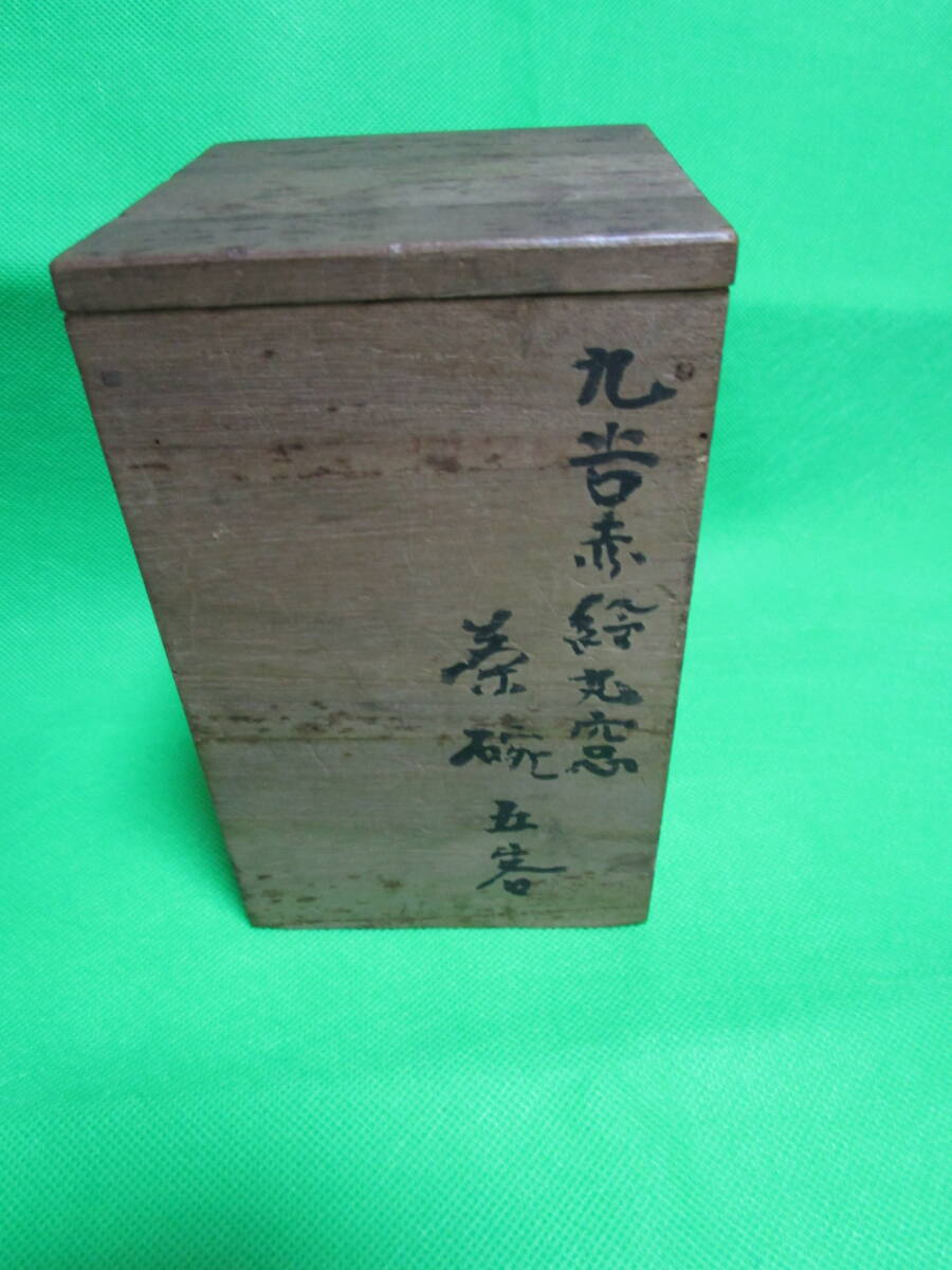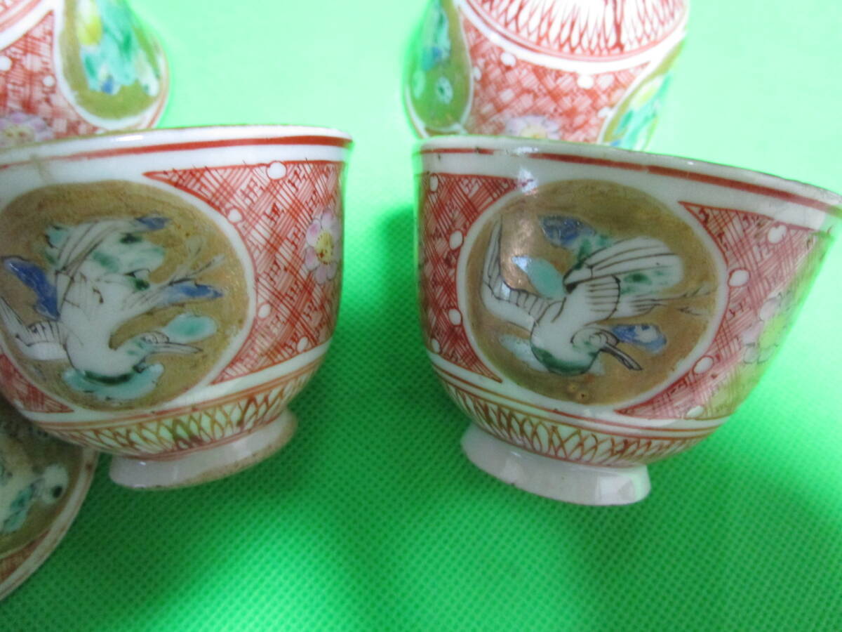 お茶屋さん蔵出し 九谷焼 赤絵 丸窓 茶碗 五客 骨董 昭和レトロ 訳アリ