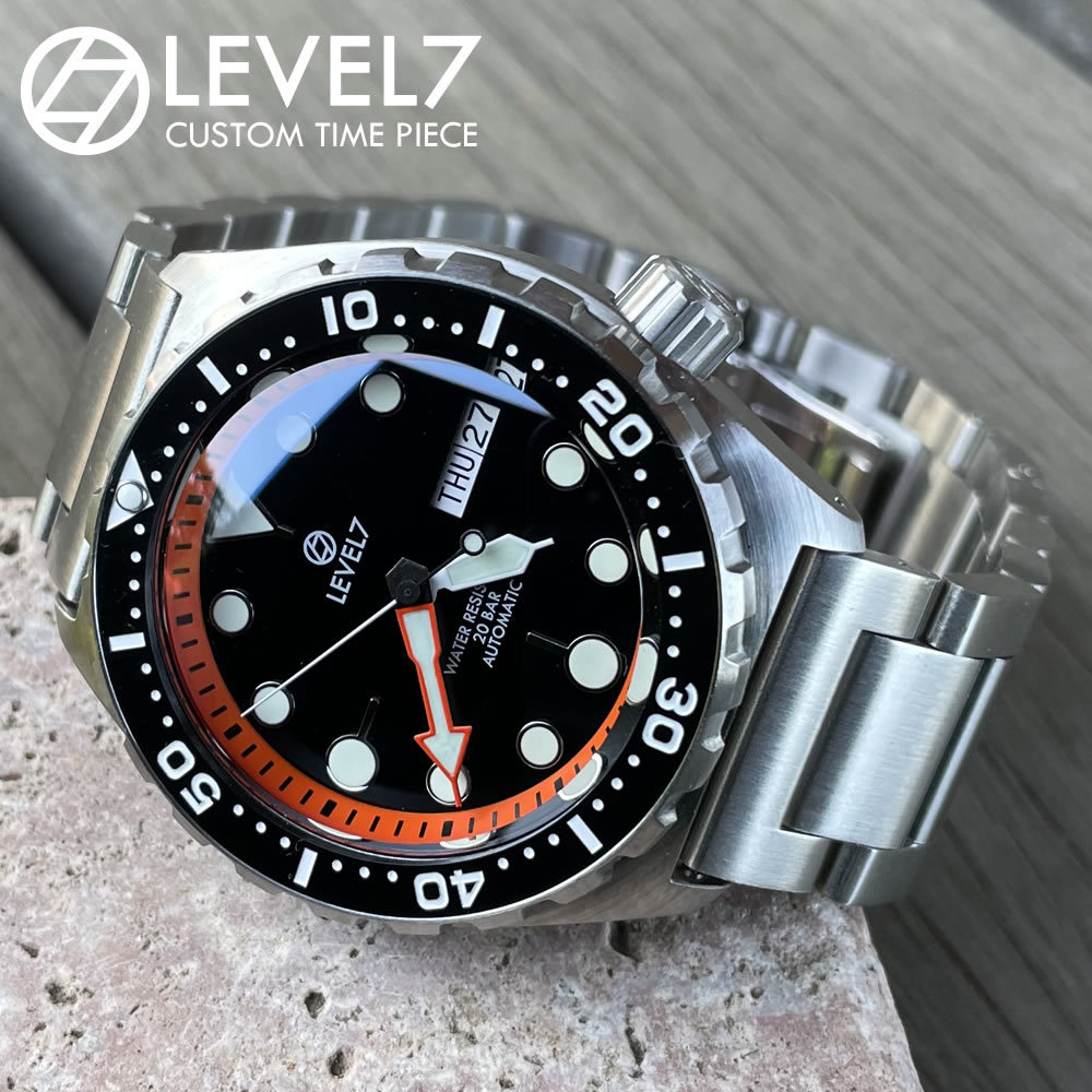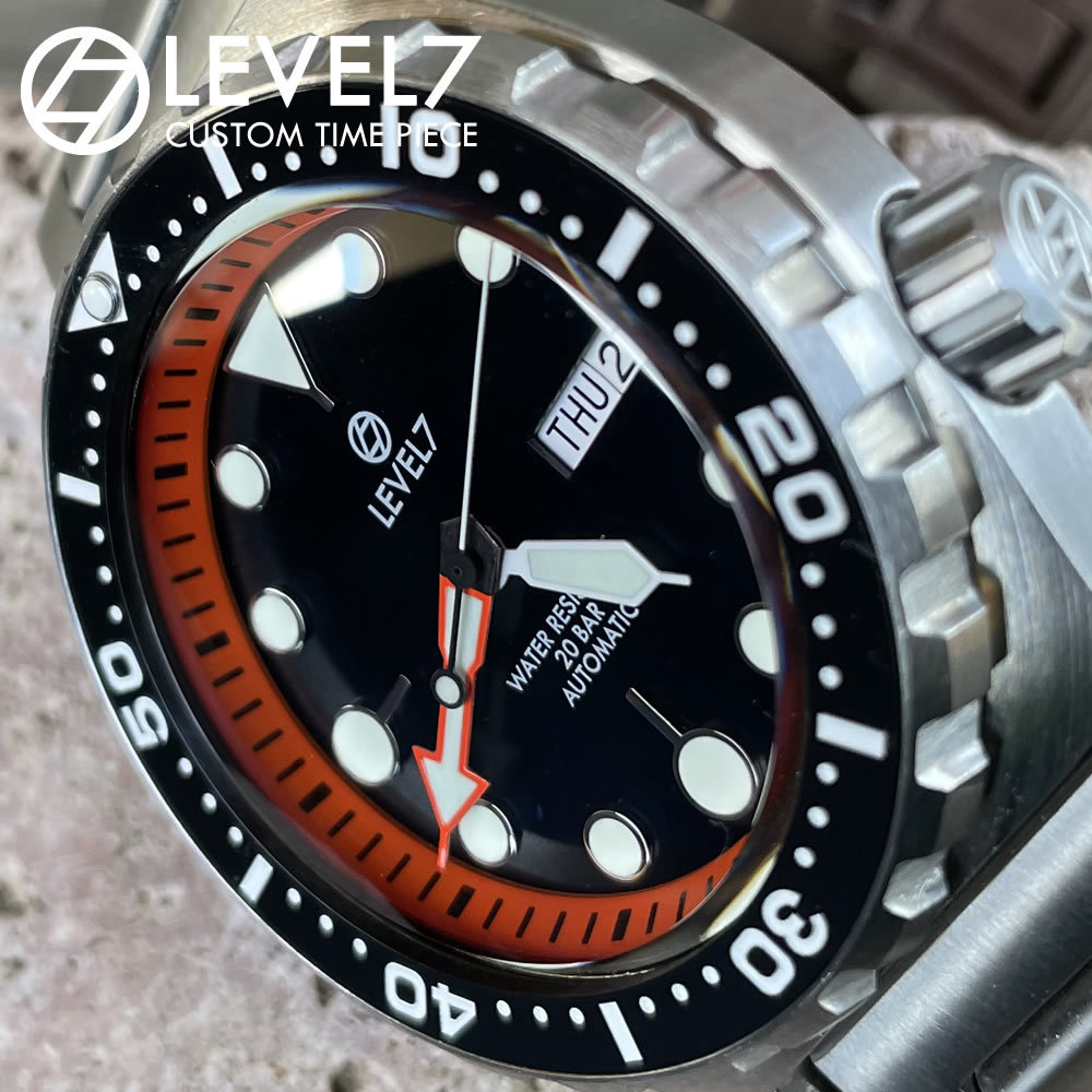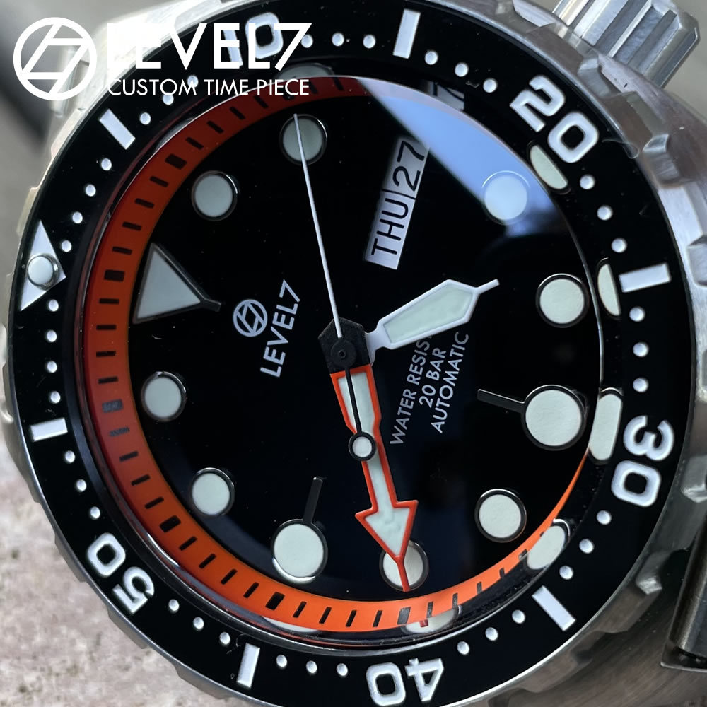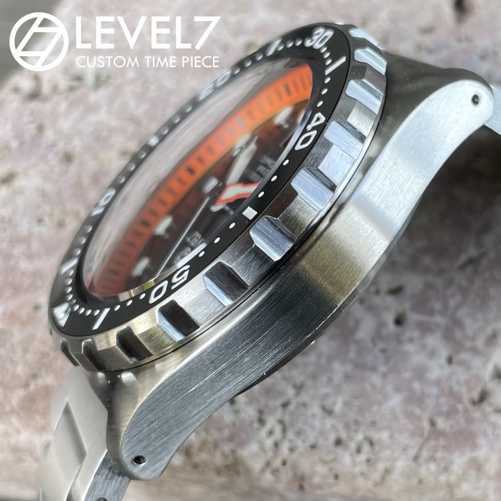 | これまでのノウハウを生かしスタートした『LEVEL7ウォッチ』が行き着いた先、それは、『大人の男が本気で楽しめる自在にカスタマイズ出来る腕時計』 腕時計を構成する全てのパーツにコダワリ、最良のパーツを結集させ、LEVEL7の拠点、川越市の自社組立をした日本製の腕時計が、このカスタムタイムピースです。 ケースには、錆に強く、低アレルギーな金属、医療器具などに使用される316Lサージカルステンレス、風防は、傷に強い硬度9を誇るサファイアクリスタルを採用し、視野性を確保するため、3層ARコーティングを施したコダワリ。 耐水、防水性は、20気圧を確保。 蓄光(ベゼル、ハンズ、インデックス)には、薄暗い時、暗い時、どんな時でも、光を放ちあなたに時間を示してくれるスーパールミノバを採用。 腕時計の心臓部でもあるムーブメントは、日本が誇るセイコーホールディングスの子会社、セイコーウォッチ(SII)の自動巻きムーブメント(NH36/NH36A)を採用しています。 パーツサイズを統一することで、ご自身で自在にカスタマイズ出来るよう、設計規格されています。 『一個の腕時計=一つのデザイン』の常識を打ち破る本気で楽しめる腕時計です。 カスタマイズ出来るパーツは、ベゼル、ベゼルインサート、更に、針、文字盤、十分な工具を所有されカスタムを楽しまれる方は、風防(クリスタル)、チャプターリング、ケースなどまでも。。。 随時、新しい規格を考え、各パーツのリリースを予定しています。 もちろんLEVEL7のもう一つの柱でもあるレザー部門が、製作するハンドメイドレザーベルトも着せ替え出来ます。 ご自身に合ったデザインを、その日の気分、季節、シチュエーションに合わせコーディネート出来る『大人の男が本気で遊べる腕時計』、組み合わせは、無限! 楽しみも無限大、新感覚の腕時計、それが、このLEVEL7の『CUSTOM TIME PIECE』 |