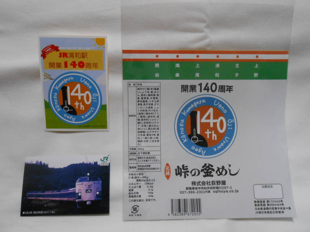 JR東日本 浦和駅 高崎線 開業140周年記念イベント 配布グッズ 荻野屋 峠の釜めし 掛け紙 はくつる カード JR浦和駅ステッカー 上野駅 掛紙