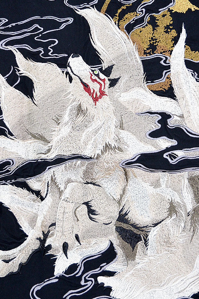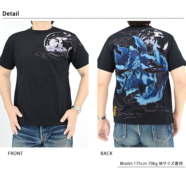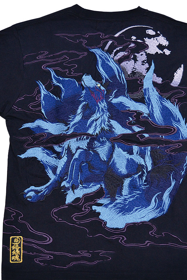 絡繰魂さんから「粋 月光九尾半袖Tシャツ(242051)」のご紹介です。 今回モチーフの主役に採用されたのは、近年人気を博している九尾。 バックにしっかり柄を入れている分、フロントはシンプルにデザインし、メリハリを付けました。 ボディーには、綿100%の刺繍に負けないコシのあるTシャツ生地を採用。 | |||||||||||||||||||||||||