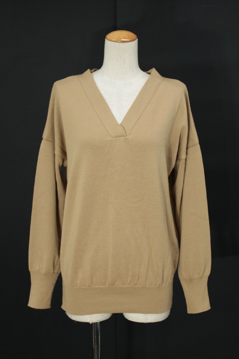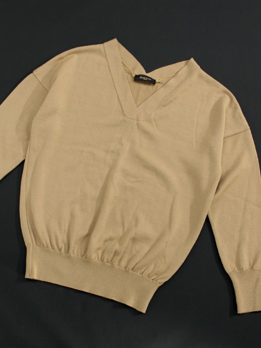 美品 Demi-Luxe/デミルクスビームス Vネック長袖ウールニットプルオーバー 茶 mg772