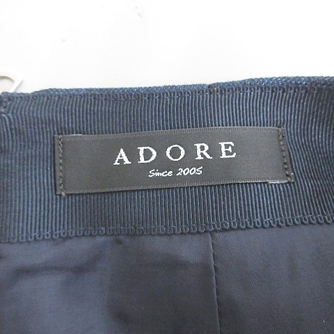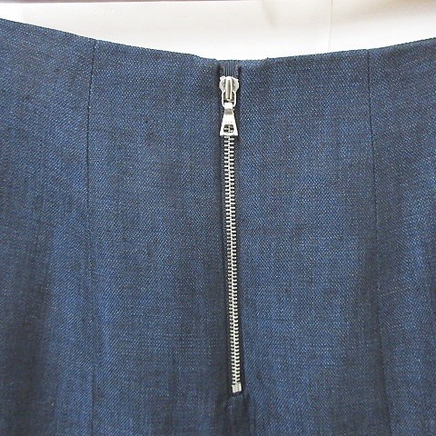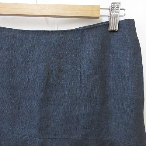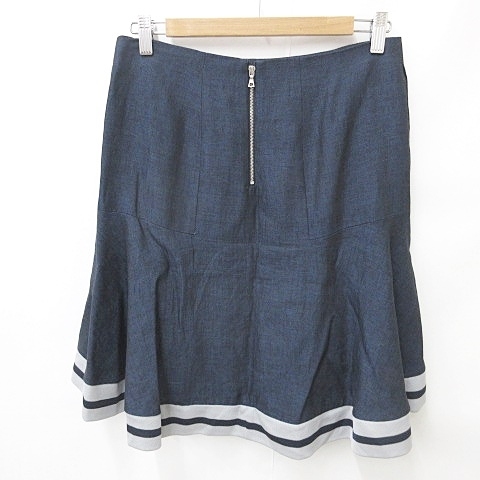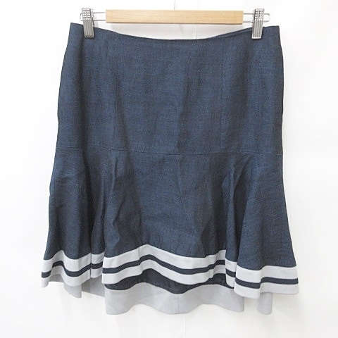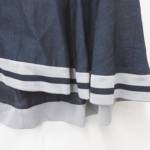 アドーア ADORE スカート ひざ丈 フレアー フィッシュテール ライン ストレッチ リネン 紺 グレー ネイビー 38 レディース