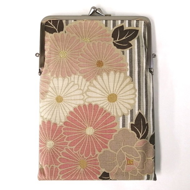 | 商品説明 | 【商品コード:2232】 ■商品詳細 ●表地:綿 ●裏地:綿 ●サイズ:22.0×14.0cm マチ付き(A6版) ※こちらの商品は生地の取り位置で印象が異なる場合がございます。柄のお好みによる交換はご対応しかねますので、予めご了承くださいませ。 御朱印帳が入るがま口マルチケース。 かつお縞に、可憐で優美な菊や牡丹をあしらいました。縁起が良い存在として大切にされた美を組合わせた織物です。 大きく口が開くので中の物をサッと取り出せてとっても便利。 A6サイズの本やノートがぴったり収納でき、本やノートの角が折れることもありません。 薄型なのでバッグに入れてもかさばらないので、御朱印帳入れとしてだけではなく、旅行用のポーチとしてもお使い頂けます。 | |