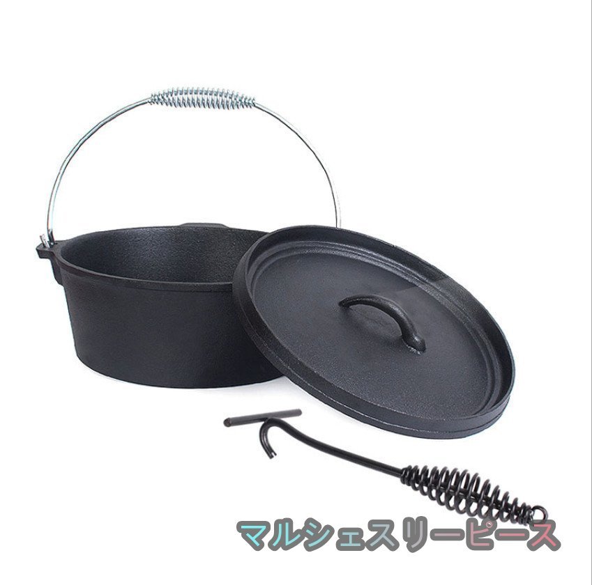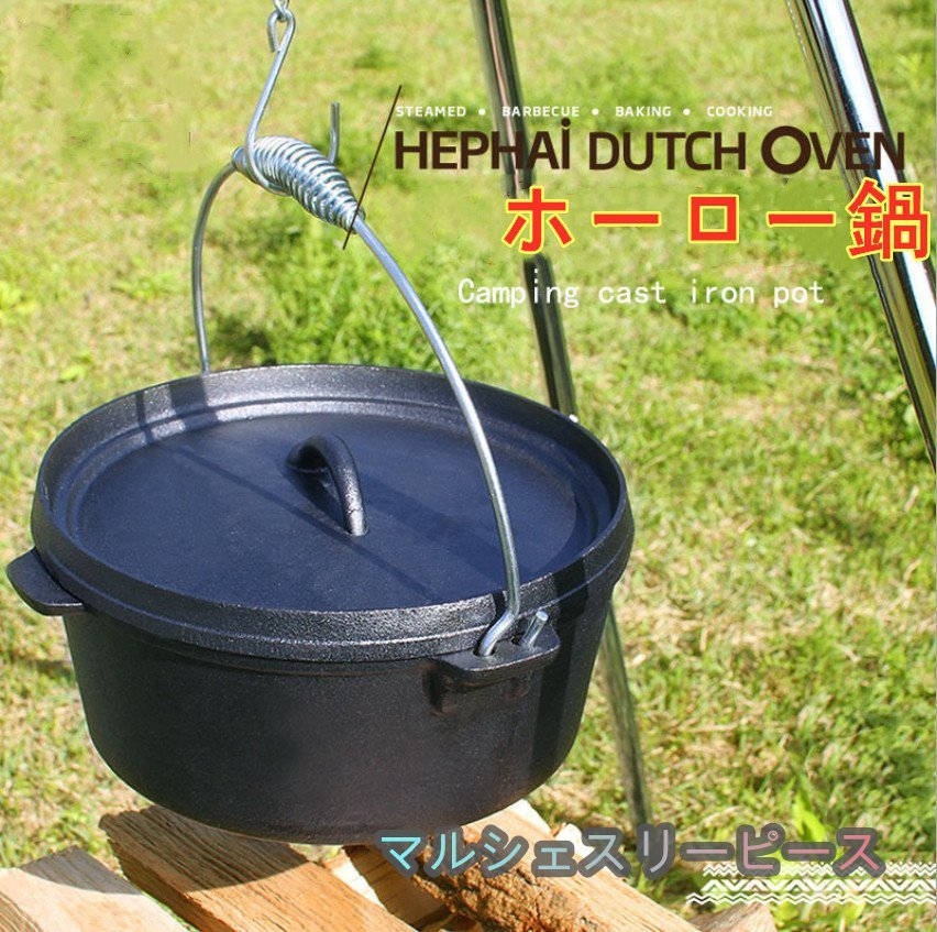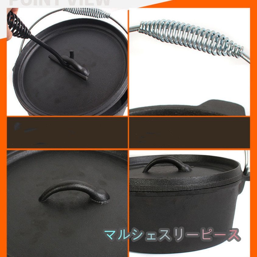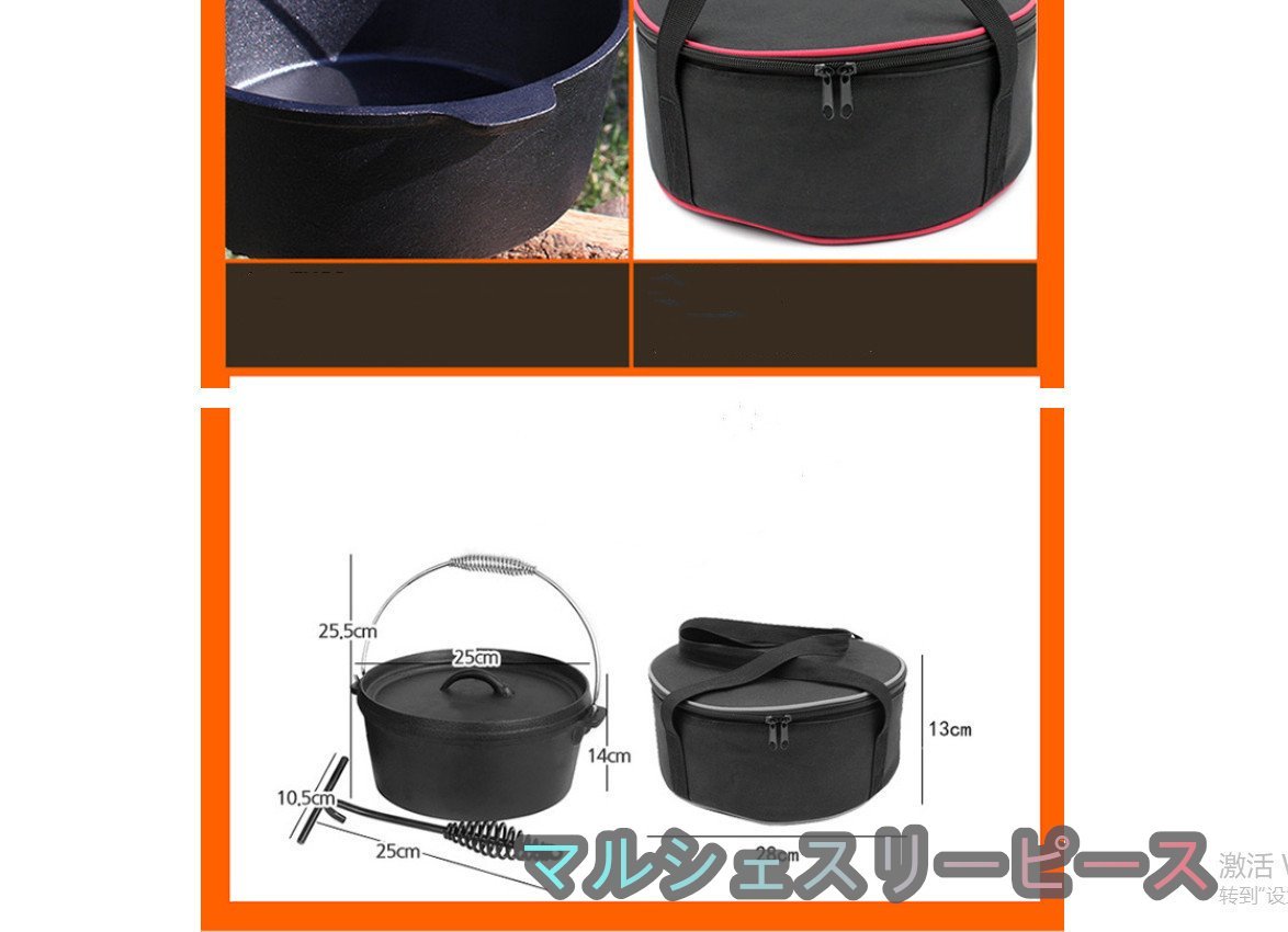 鍋 鋳物ホーロー鍋 なべ 4L 黒 ブラック キャンプ鍋 手提げ おしゃれ キャンプ用品 調理器具 重量5KG 直径25cm 収納ポッケト付き