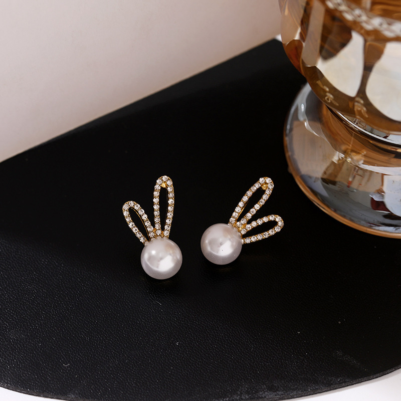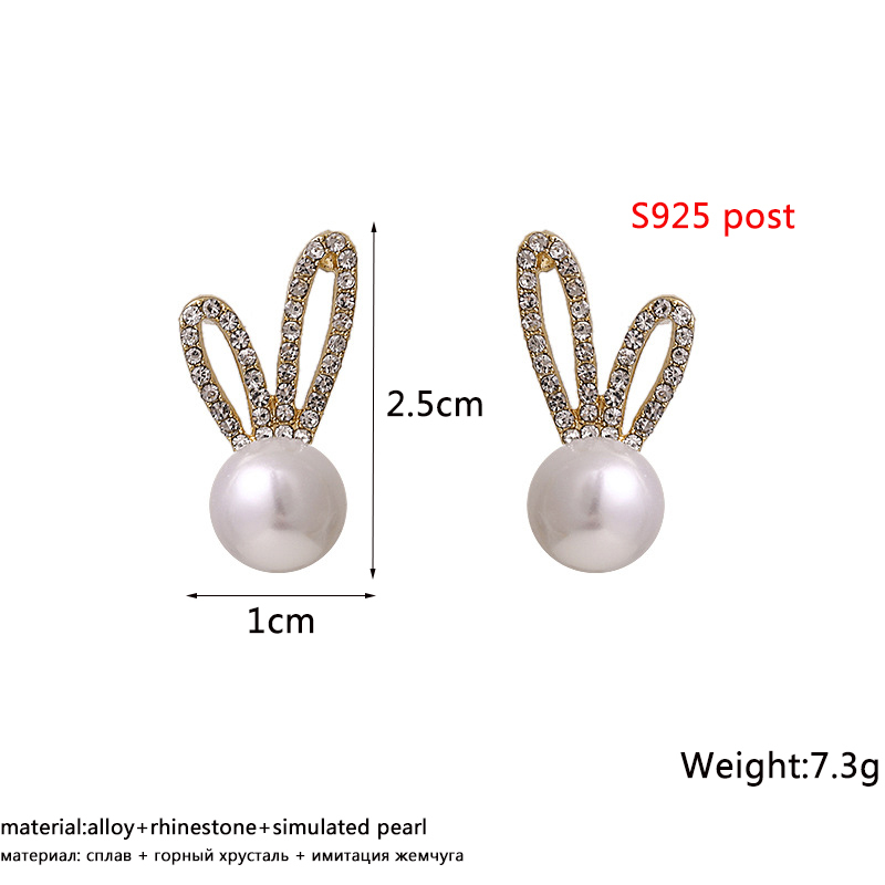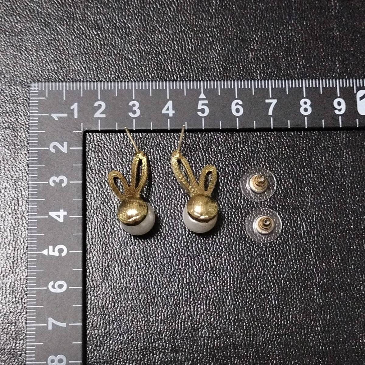 新品未使用 ピアス ゴールド うさぎ ウサギ 兎 パール 真珠 ホワイト 可愛い レディース 韓国 S925針 ラインストーン アニマル #D180-2
