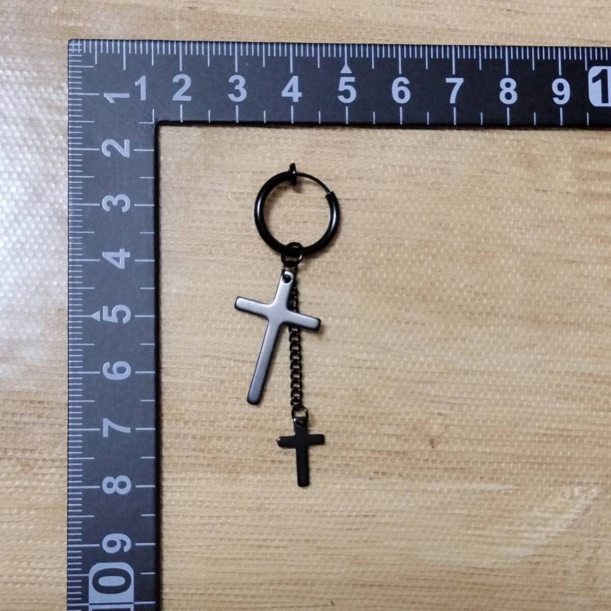 新品未使用 フェイクピアス イヤリング 片耳 ばね式 ブラック クロス 黒 十字架 ステンレス メンズ レディース ユニセックス ロック#D172-2