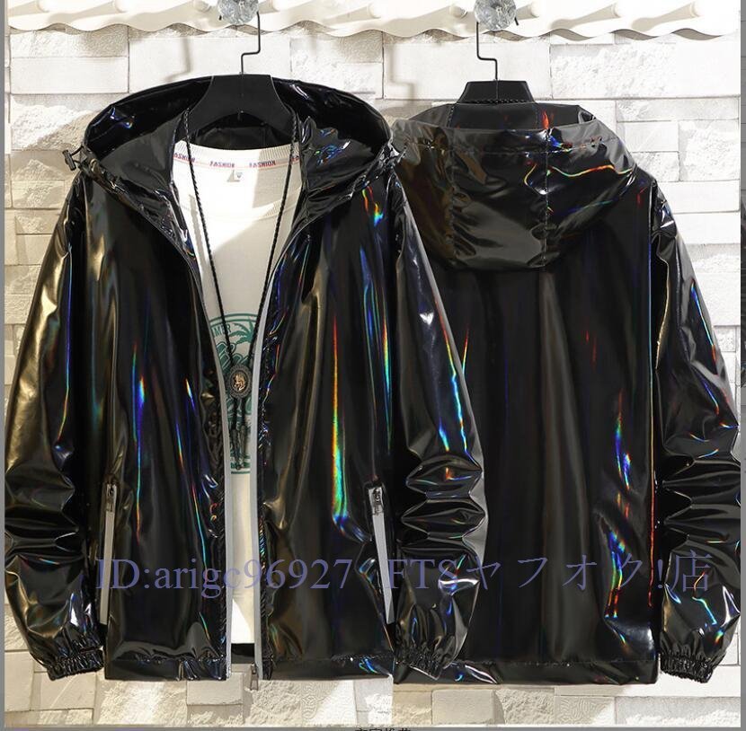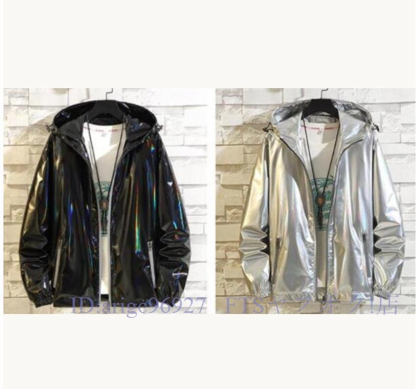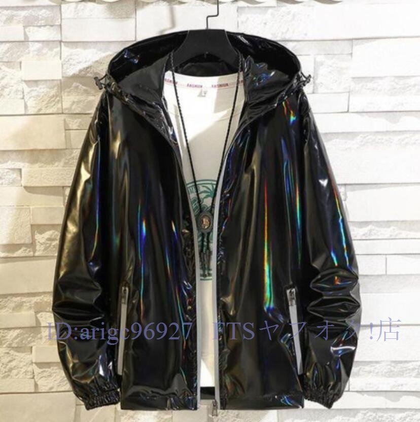 A6784★光沢 ジャケット マウンテンパーカー アウター ジップパーカー 春秋服 ジャンパー ブルゾン カジュアルジャケット 黒 M~5XL