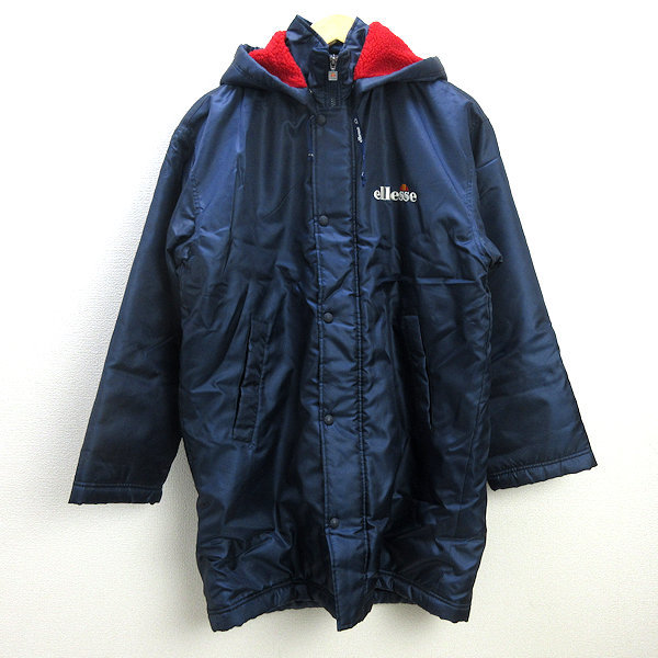 H■エレッセ/ellesse ビッグロゴ刺繍 ベンチコート 裏ボア【M】紺/MENS■43【中古】