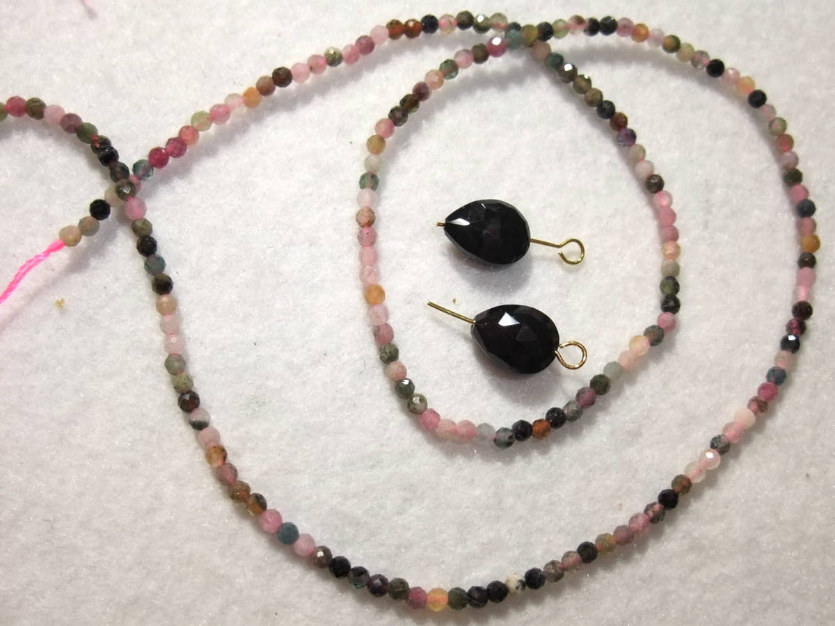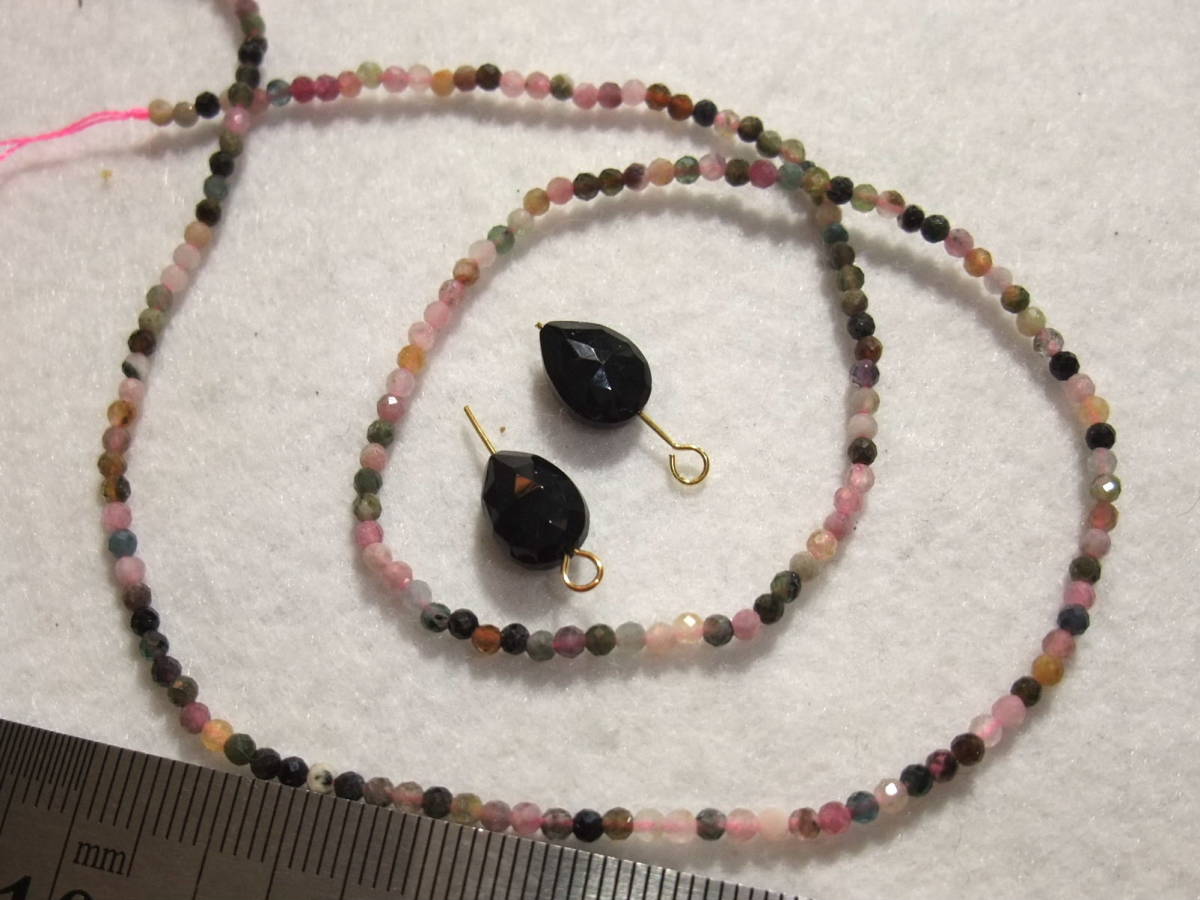 極上カット!!マルチカラートルマリンtourmaline宝飾用小粒連材とラフドロップルース縦穴セット!連材は糸通しですが色々なミックスカラーで宝飾用の綺麗な小粒です☆ルースのブラックトルマリンblacktourmalineは昔のハンドカットしずく型ラフカットで縦穴でレアです!!☆パワーストーン色々たくさん大量同梱可能!