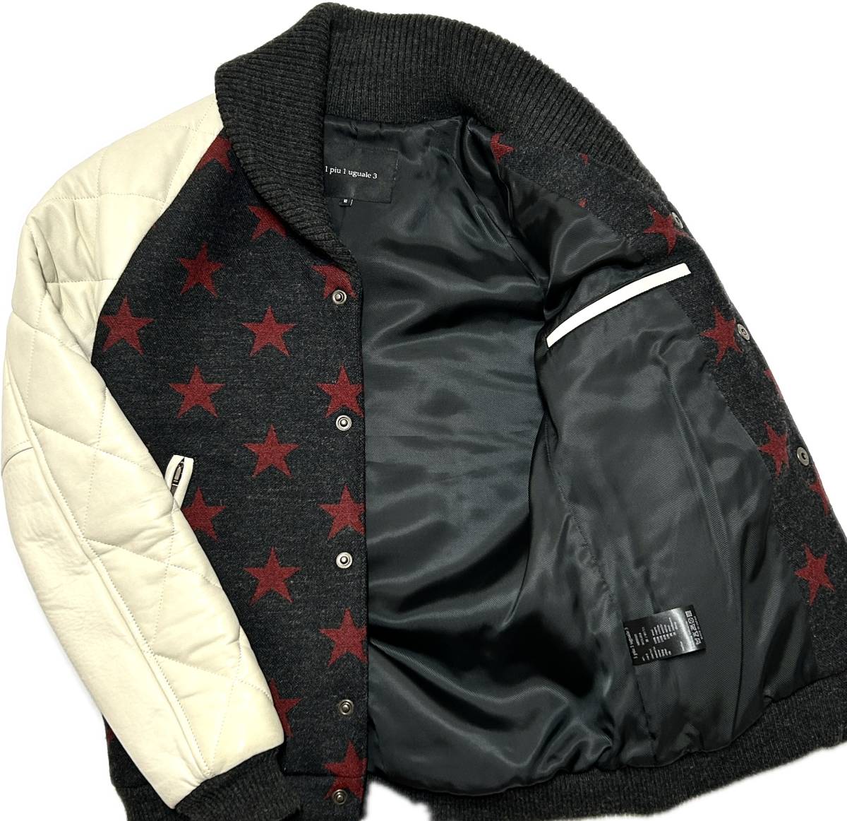 定価21万 1piu1uguale3 MOON WOOL×LAMB QUILTING DOT STADIUM Ⅲ ウール×レザースタジアムジャケット wjk akm ジュンハシモト ブルゾン