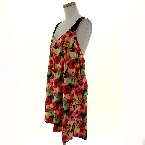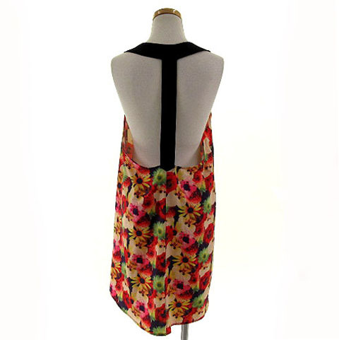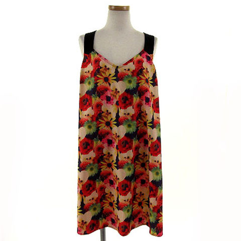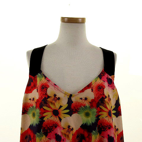 トップショップ TOPSHOP カットソー ノースリーブ チュニック丈 花柄 マルチカラー S レディース