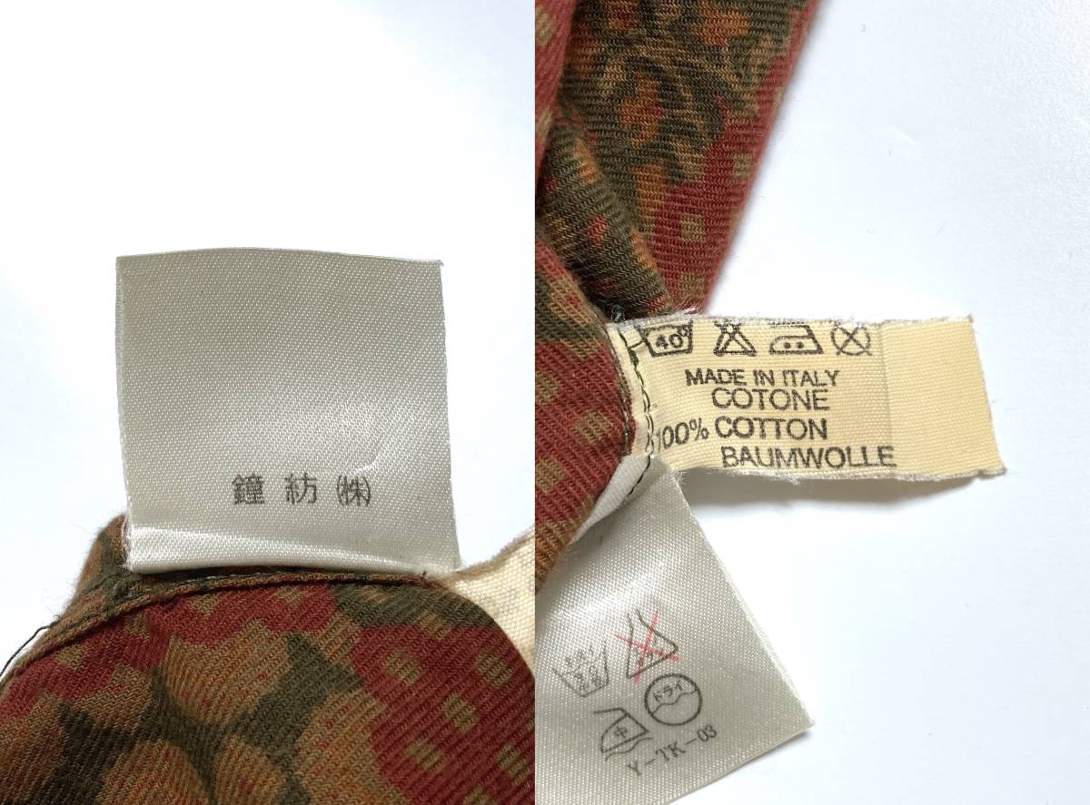 コメント | おそらく70年代から80年代頃のものと思われます。鐘紡(株)取り扱い。イタリア製。全体的なデザインはプルオーバータイプで、エリはレギュラーカラー、スソはラウンド、ポケットは左ムネに付いたデザインになります。エリはコーデュロイを使用しています。他にも色々なブランドのイタリア製のシャツや、その他いろいろなアイテムを出品しています。よろしければご覧ください。 |