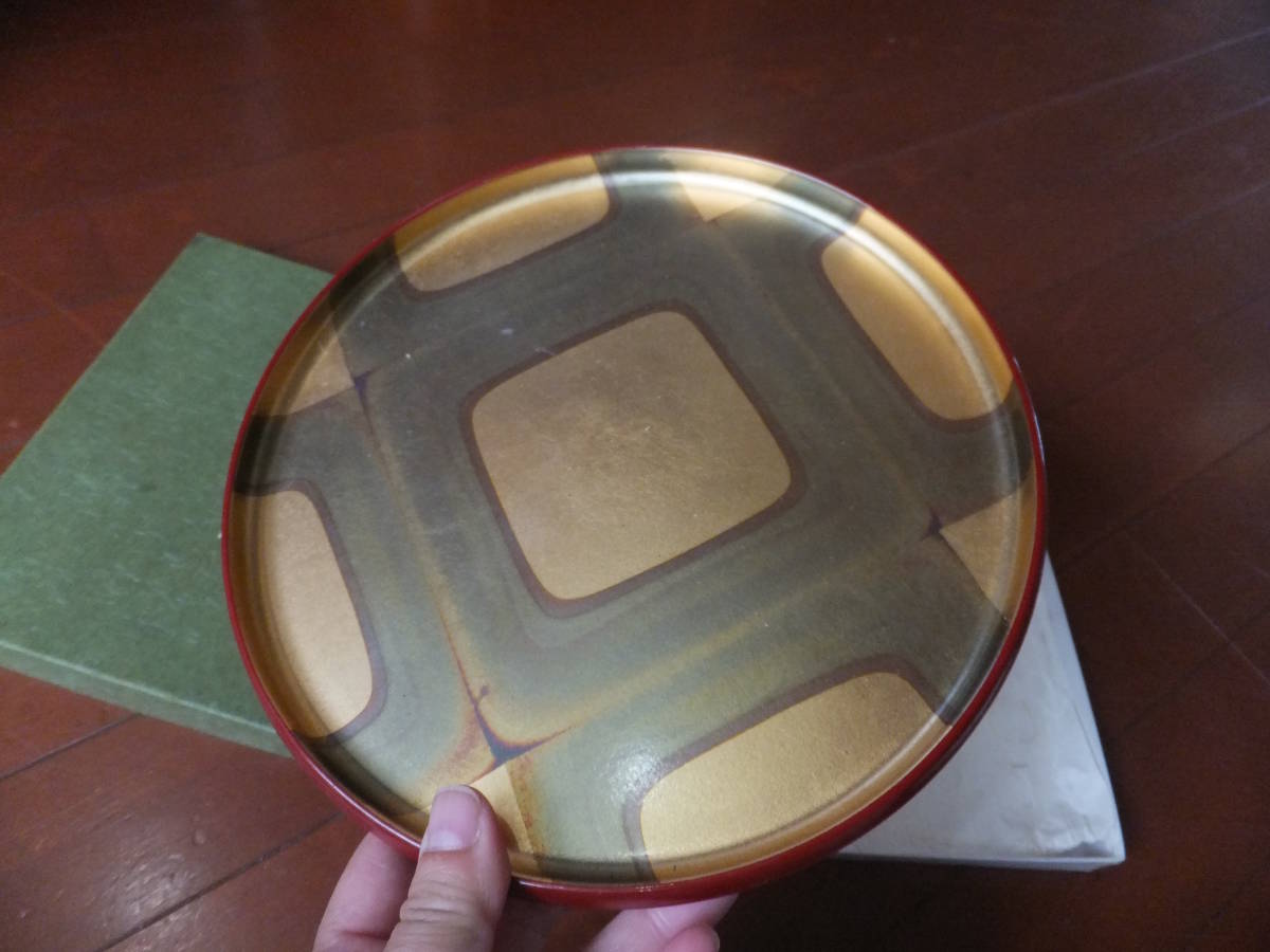 上品な丸盆です。サイズは、直径22.3cm、高さ1.5cm位です。1度使用しました。箱はありません。使用品ですので神経質な方は御遠慮下さいね。ノークレームノーリターンでお願い致します。その他いろいろ出品していますので見て下さいね。
