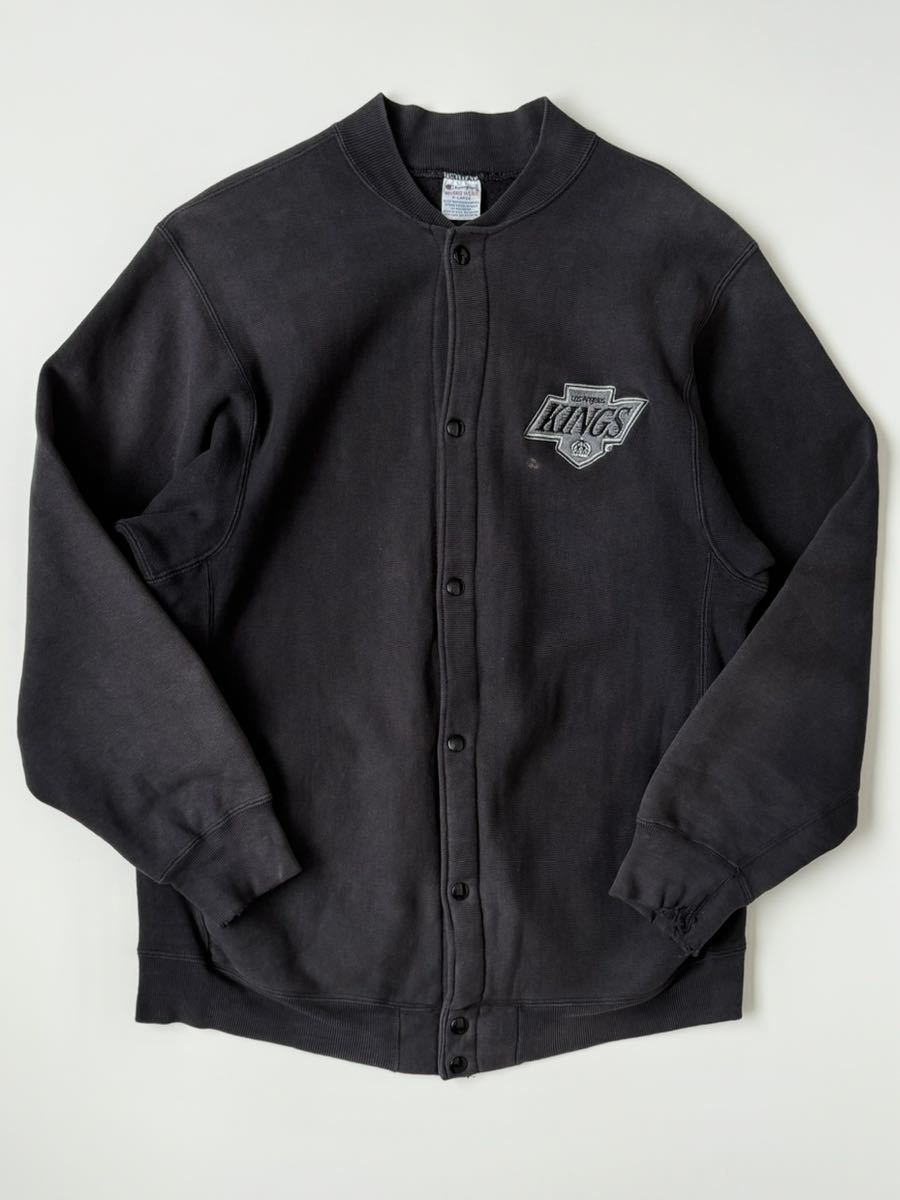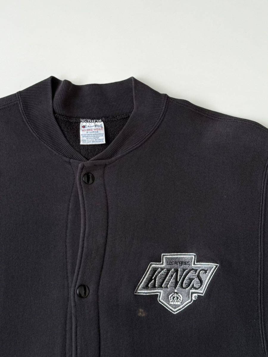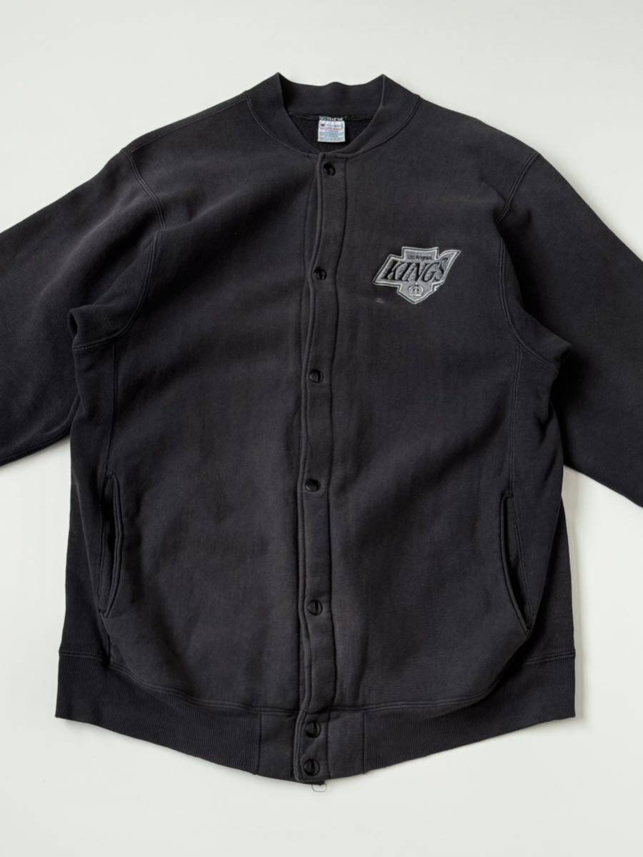 両面★90s USA製 champion KINGS リバースウィーブ スナップ カーディガン 黒 XL ヴィンテージ ビンテージ スウェット シャツ トレーナー