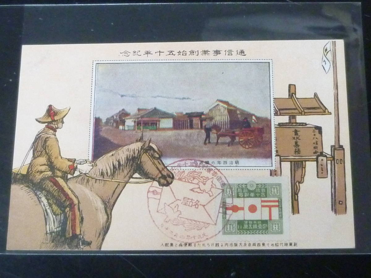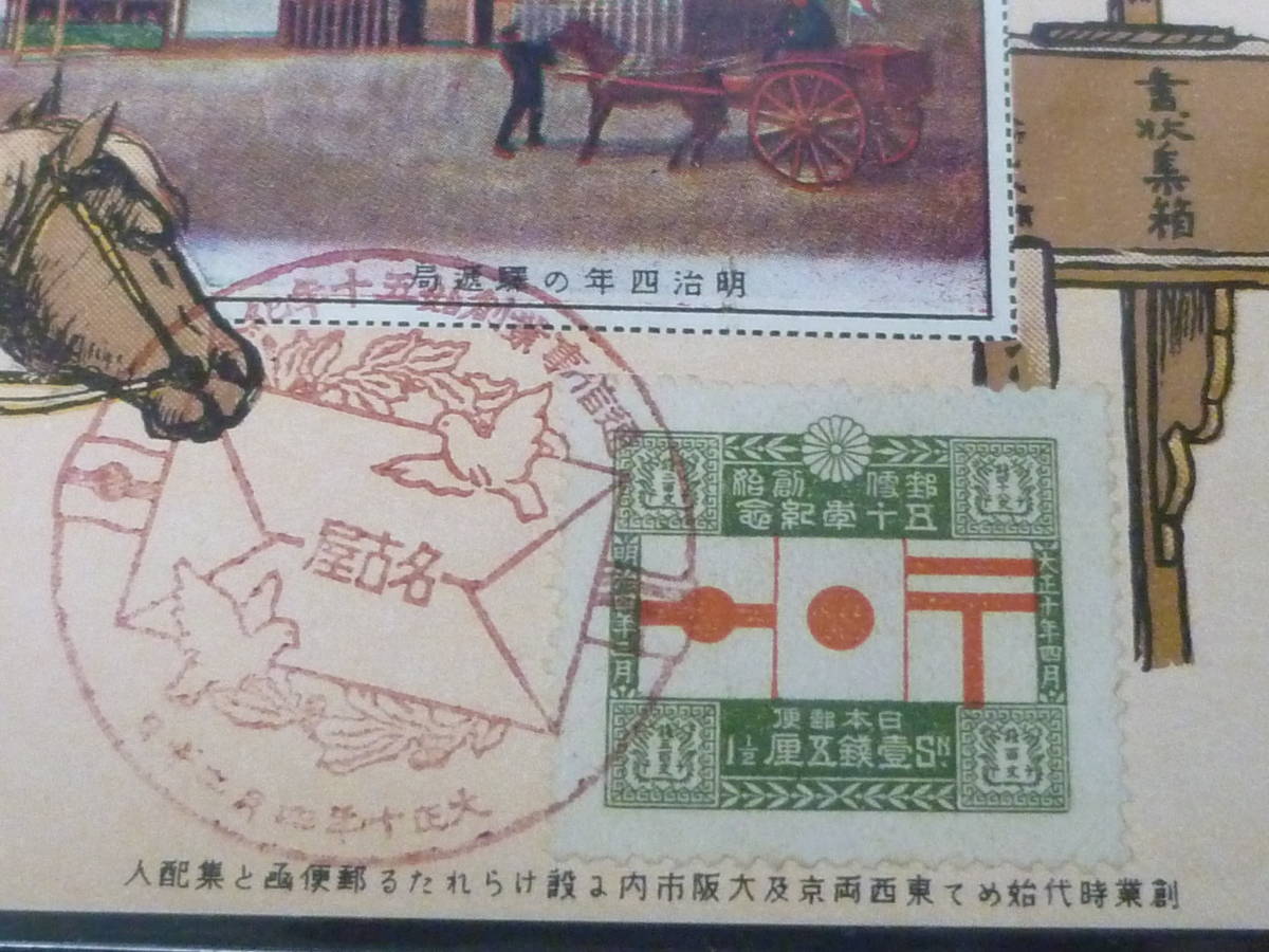 24 P 絵葉書№8 日本 1921年 郵便創始50年 1銭5厘貼 初日特印付