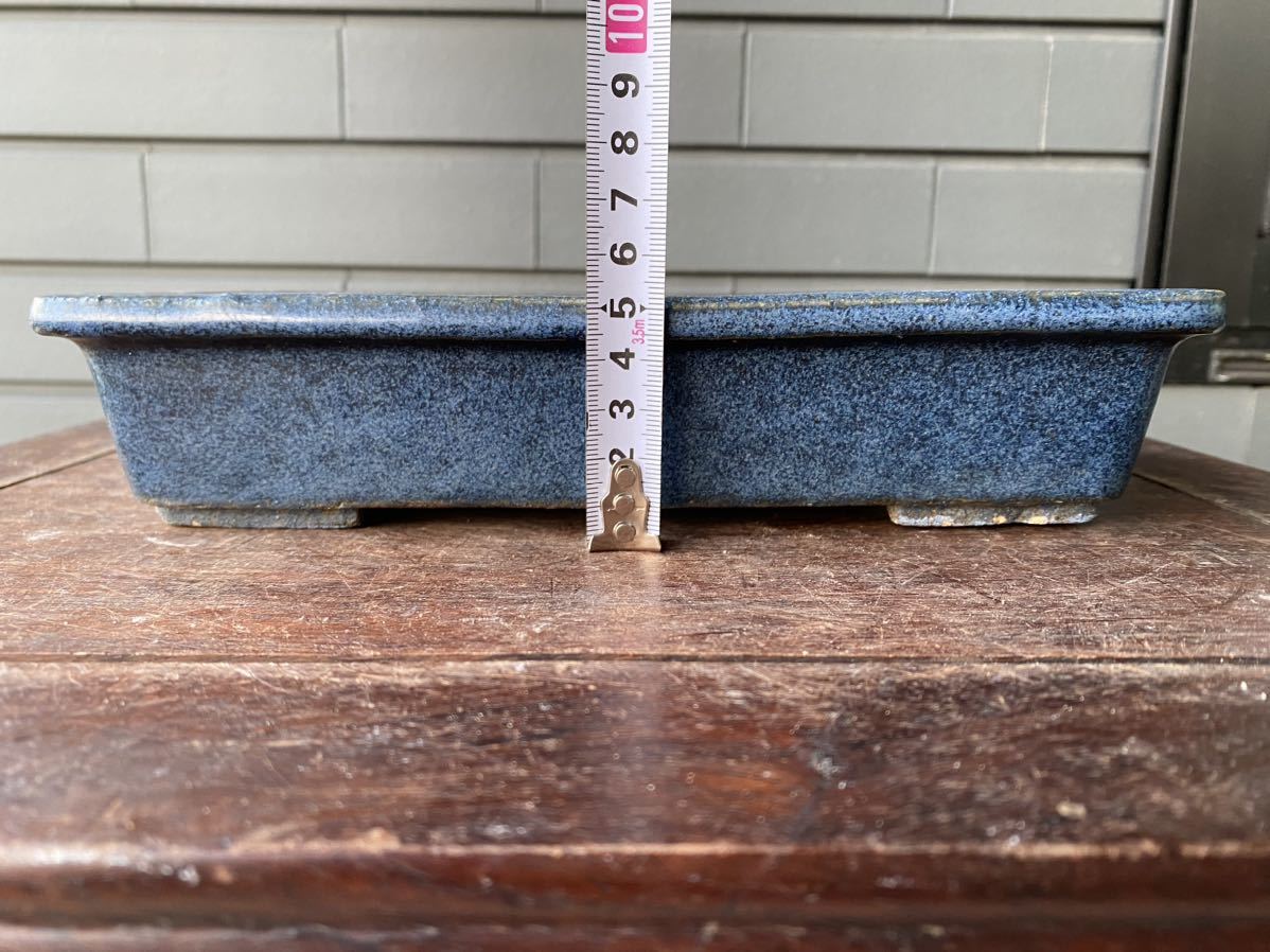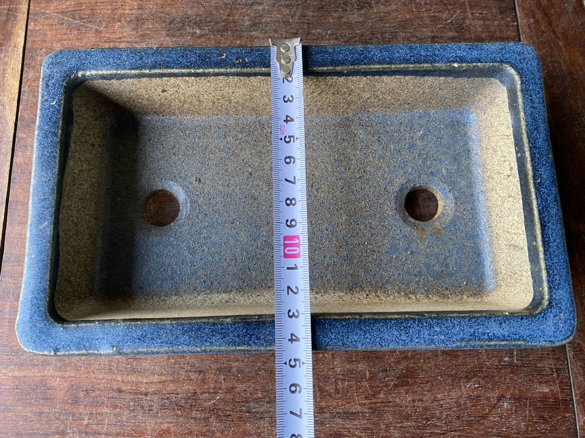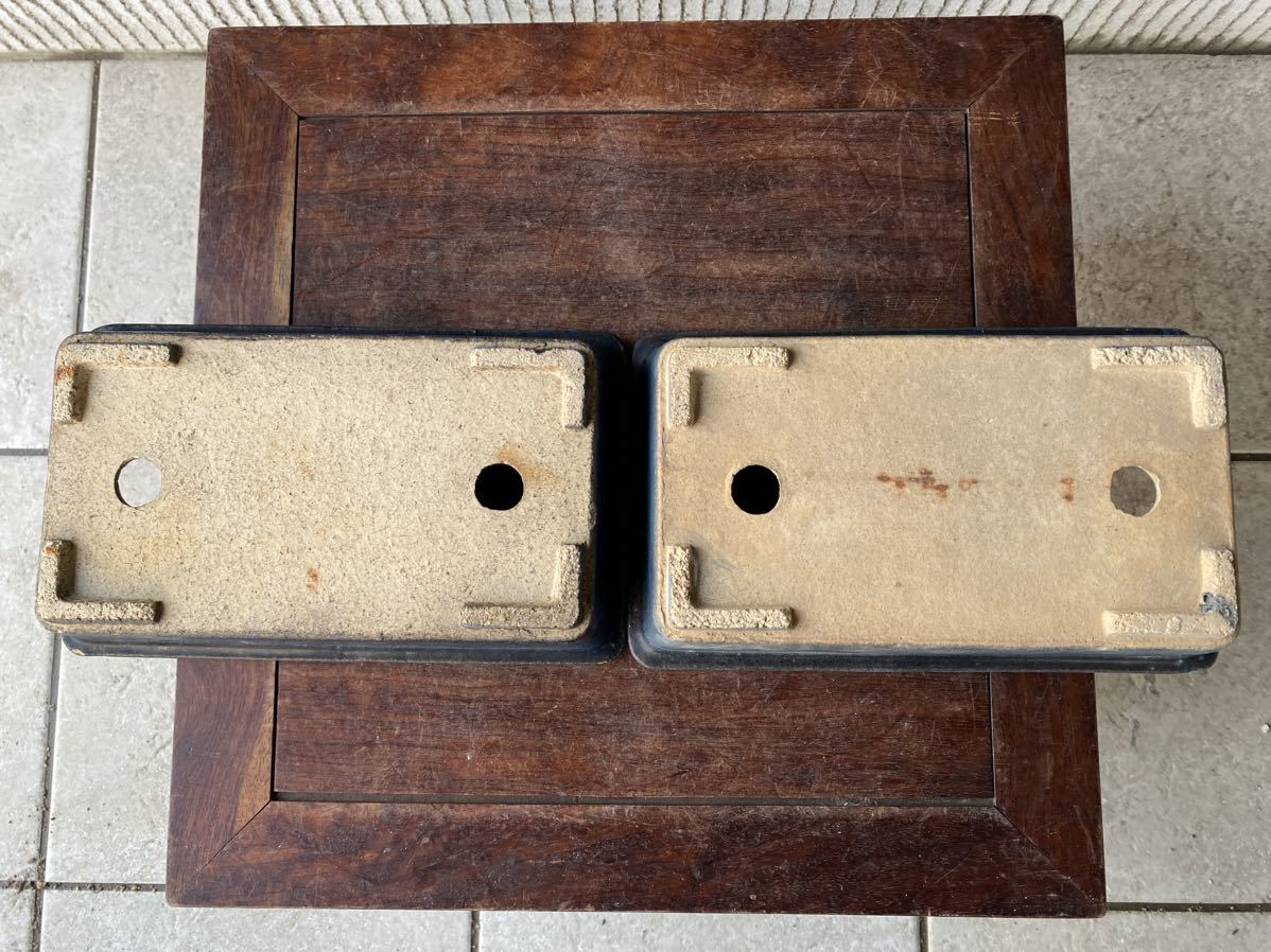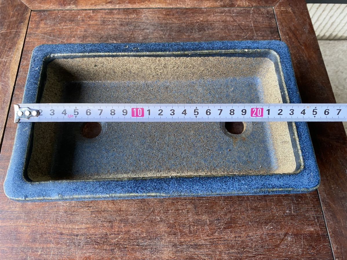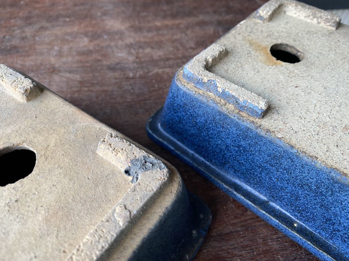 長方で青色の盆栽鉢2点セットです。