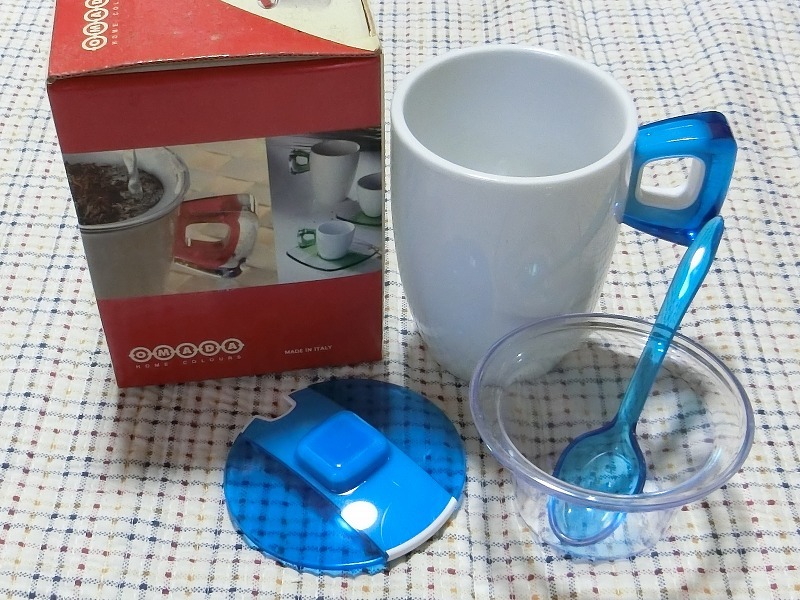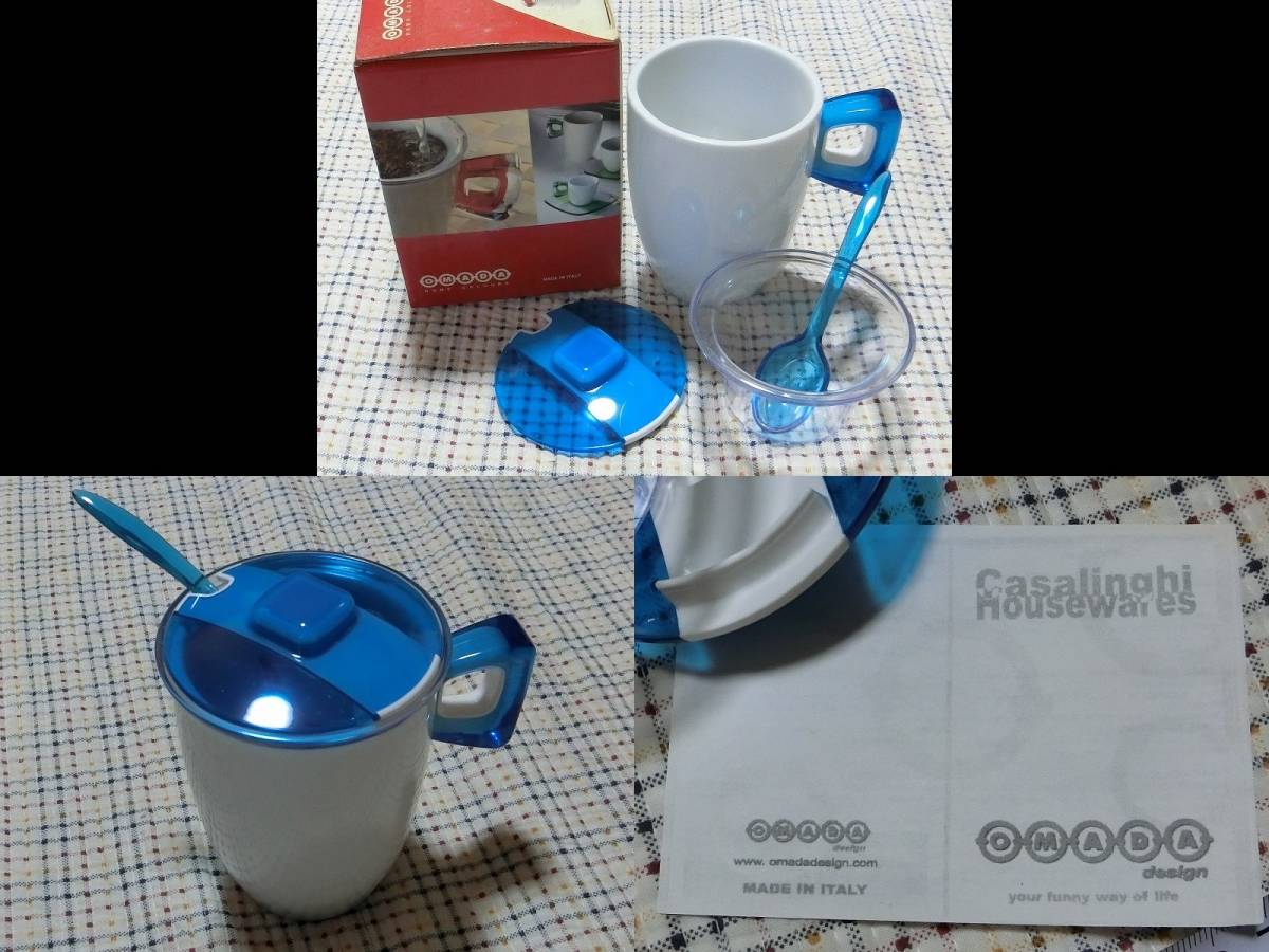 新品箱付 イタリア製●紅茶 フィルター スプーン カップ ハーブティー ボウル 蓋つき ストレーナー ブルー