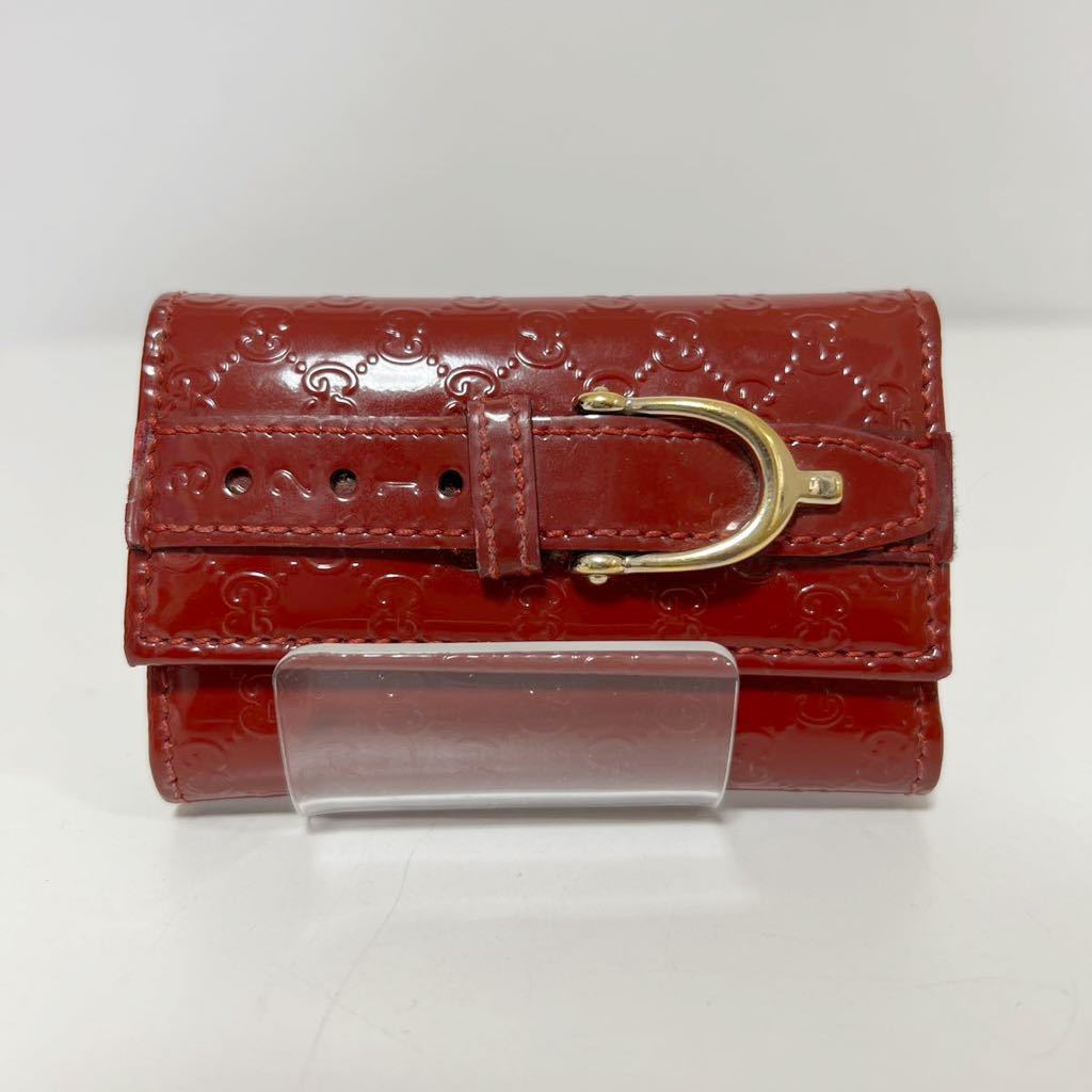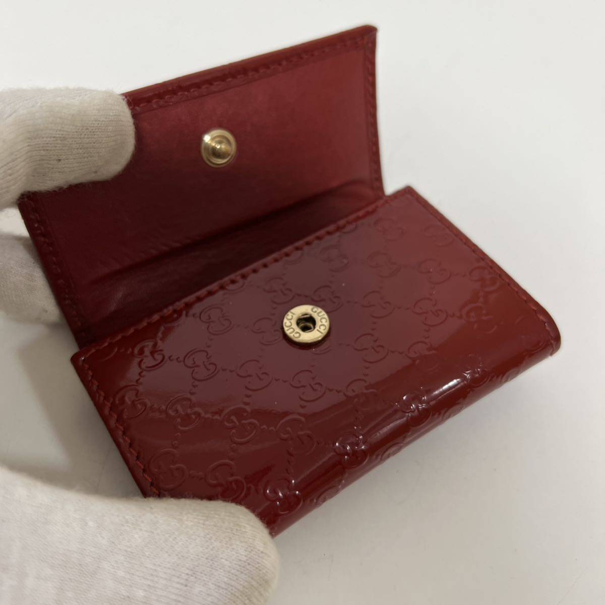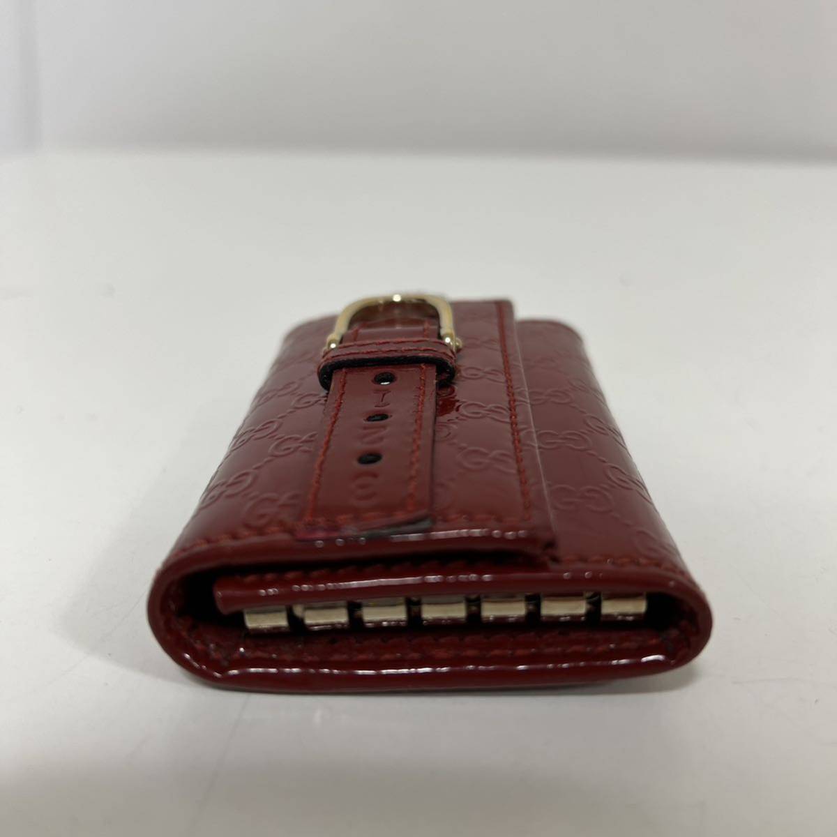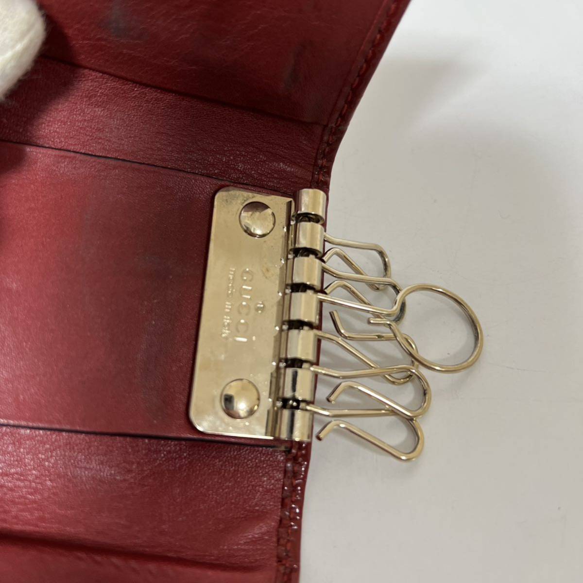 GUCCI グッチ マイクログッチシマ パテントレザー ベルト 6連 キーケース 309759 レッド系 中古