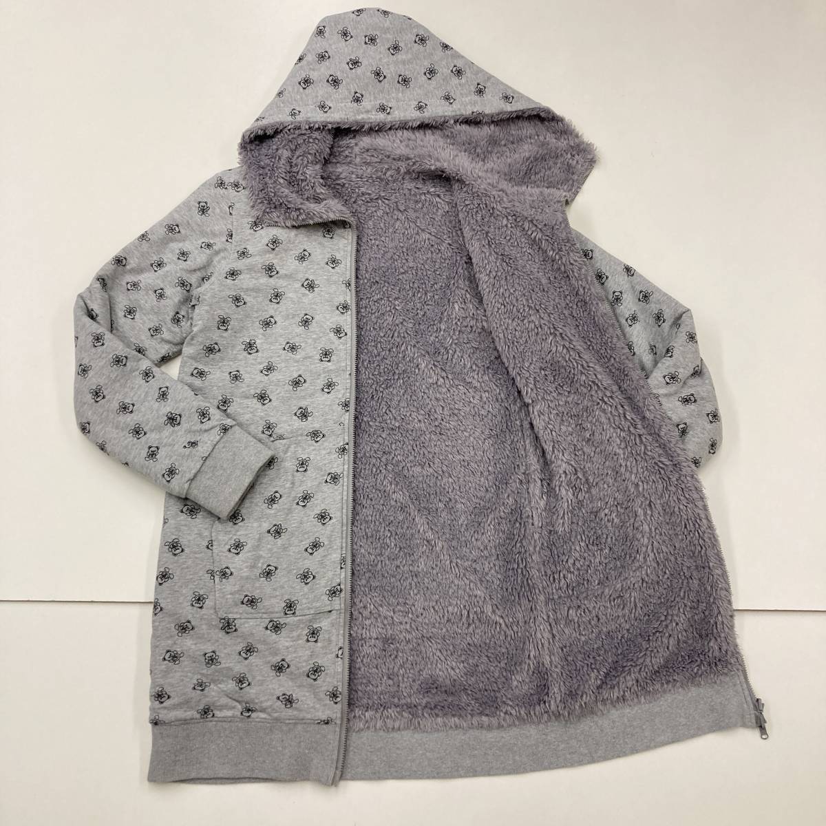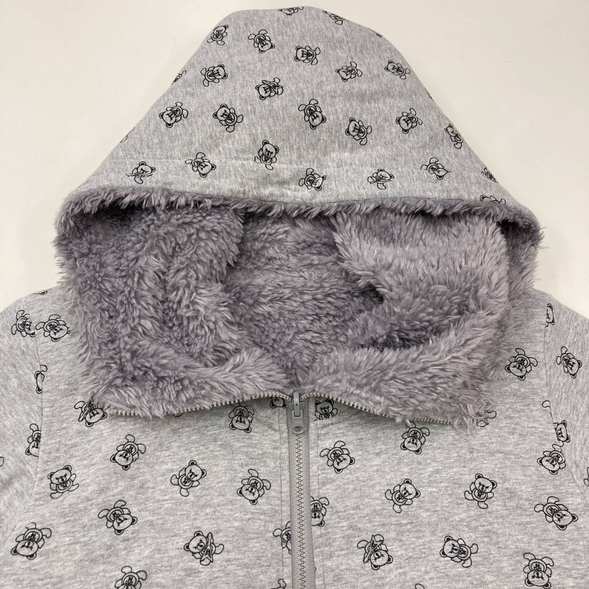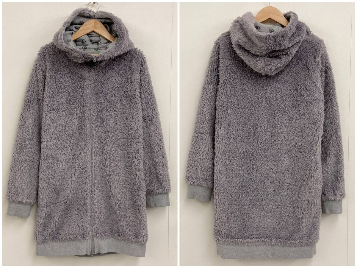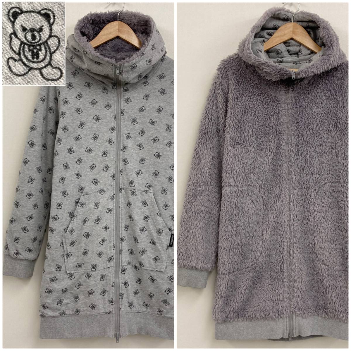 ファックベア 総柄 HYSTERIC GLAMOUR リバーシブル 2WAY ボア ジップ パーカー ロング丈 グレー