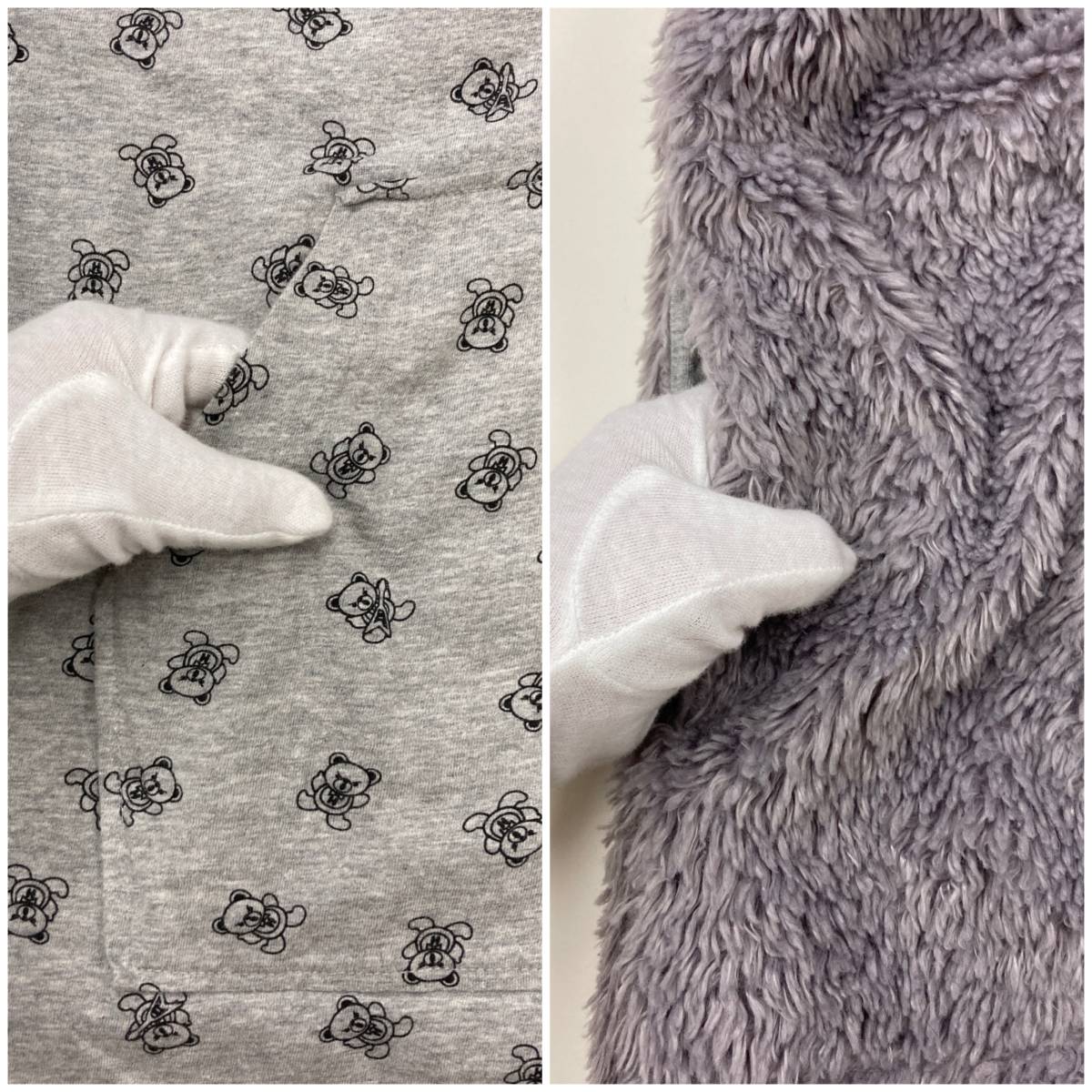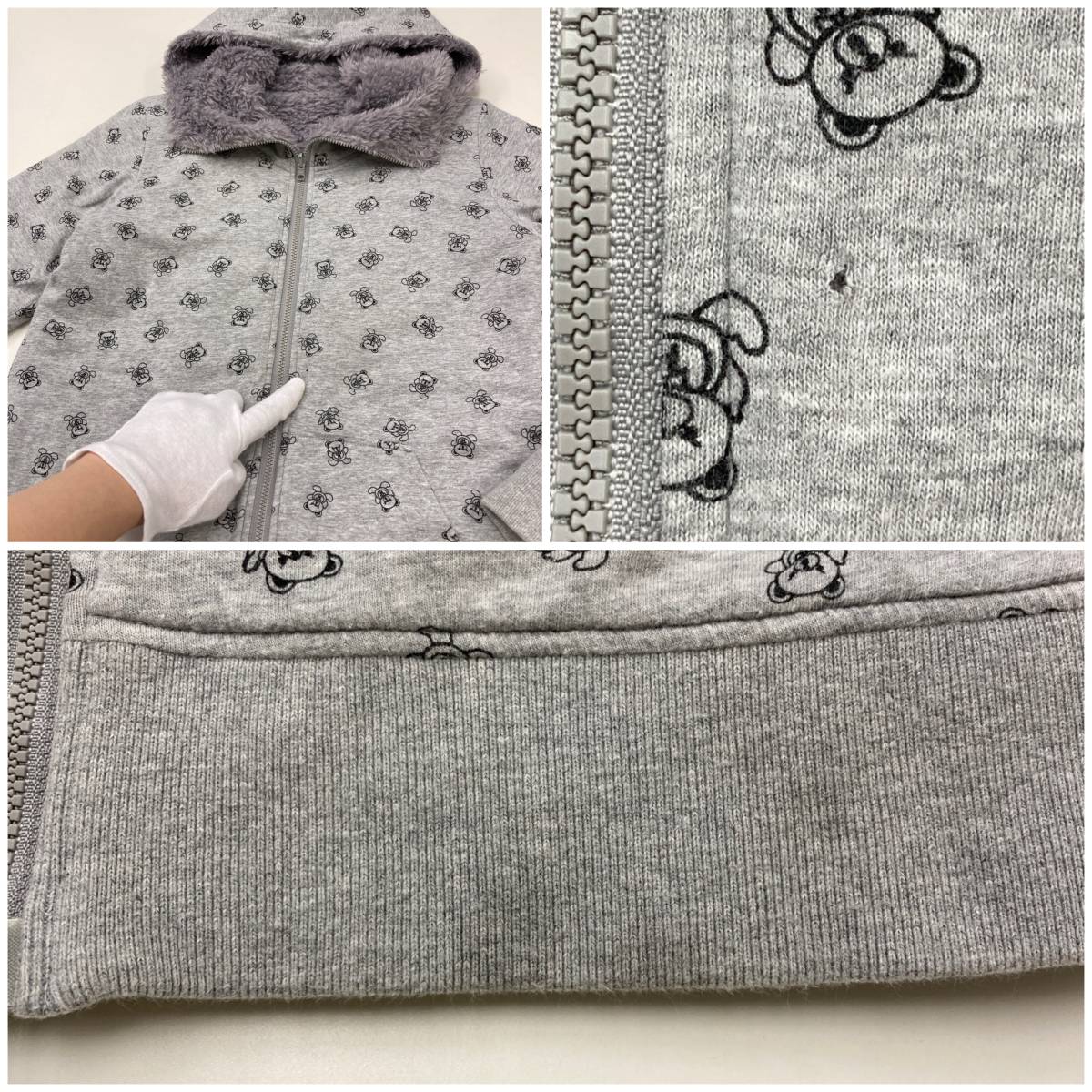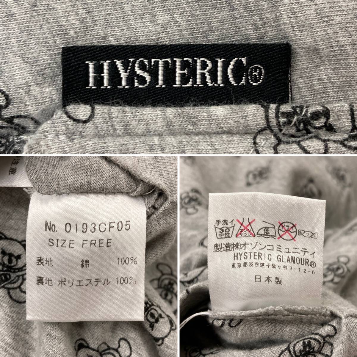 ファックベア 総柄 HYSTERIC GLAMOUR リバーシブル 2WAY ボア ジップ パーカー ロング丈 グレー