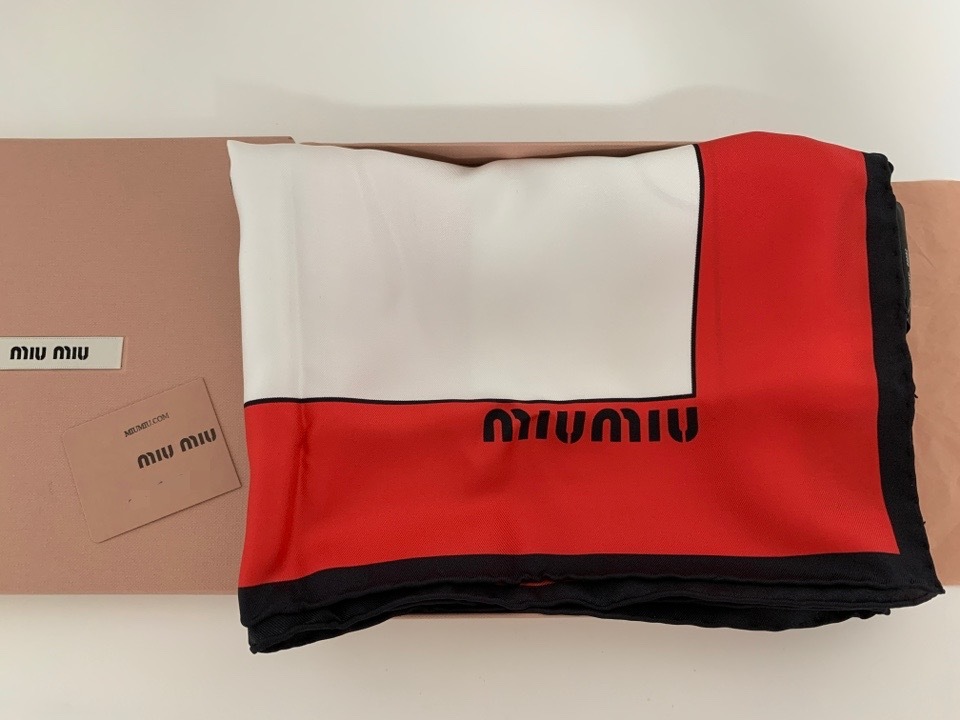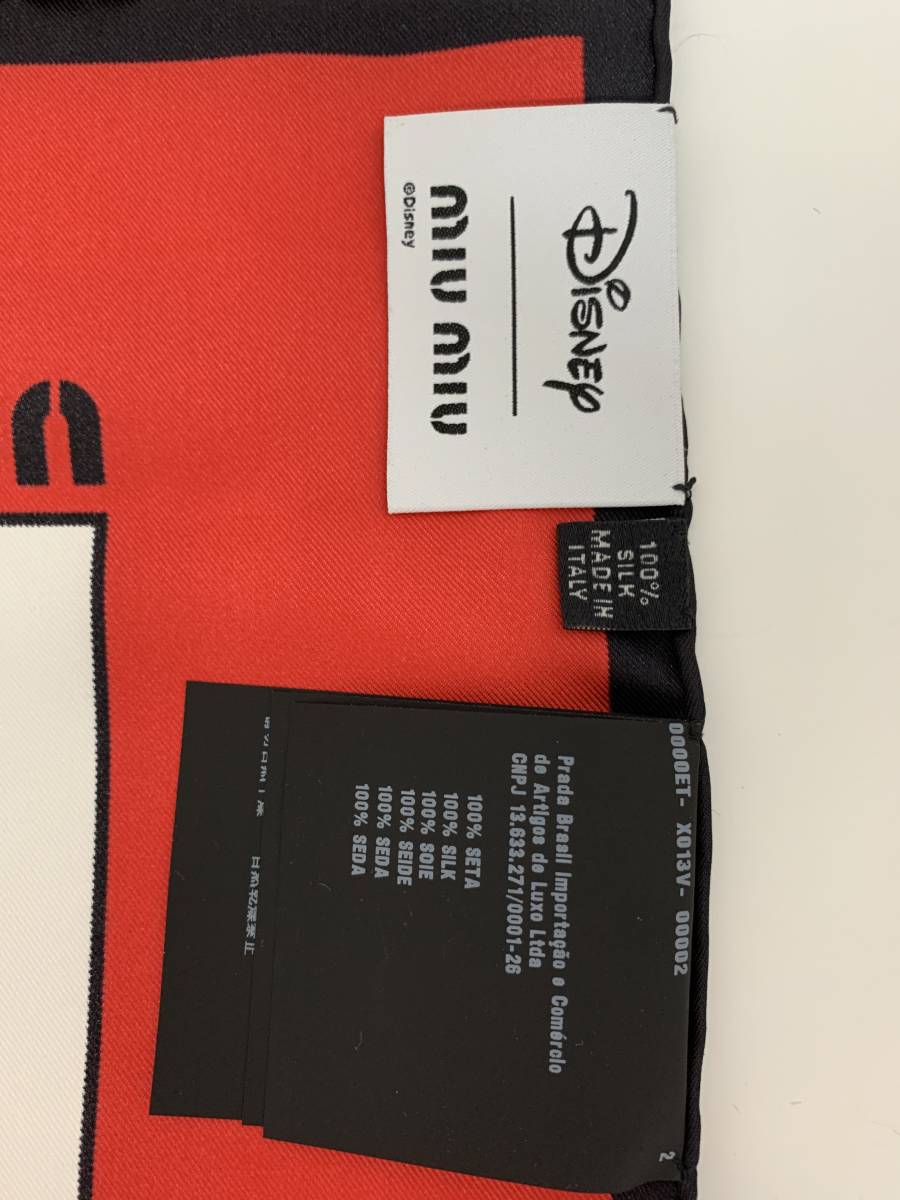ミュウミュウ正規オンラインサイトで購入したDisneyとコラボミニーマウスプリントスカーフです。