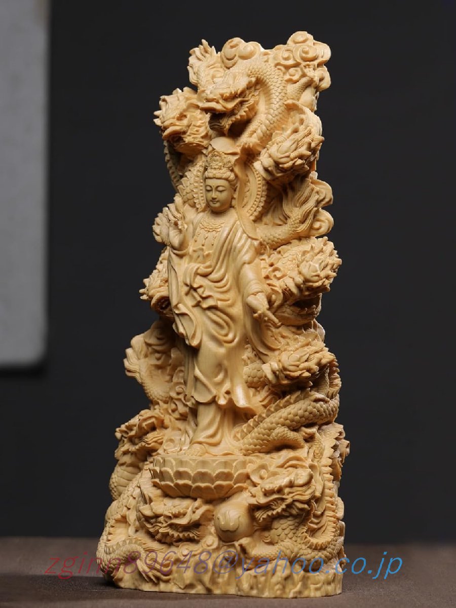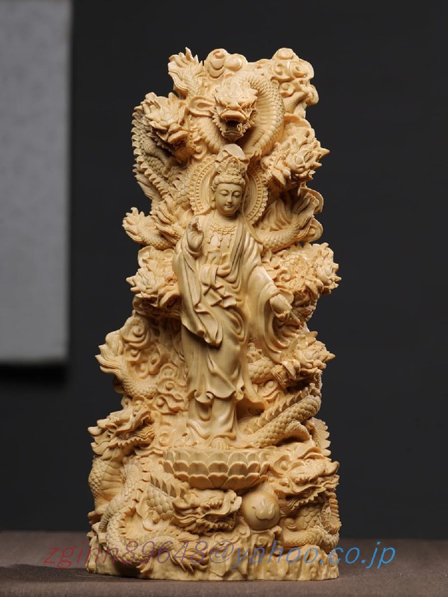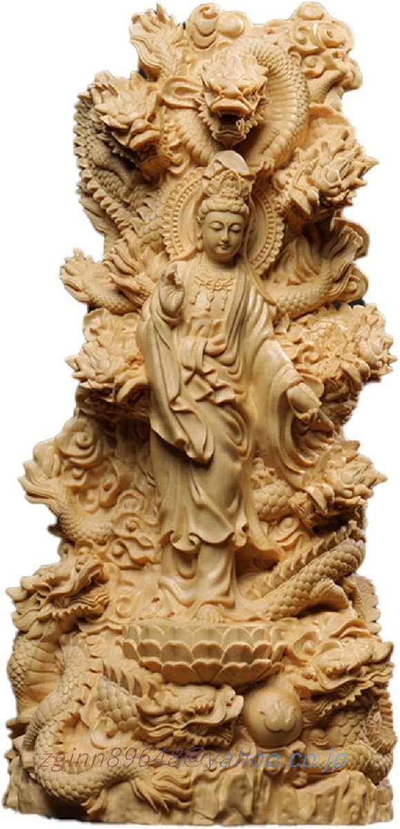 龍神 仏像【九龍観音菩薩】観音様 置物 開運 繁盛 仏間 仏壇 桧木製 木彫り仏像 (高さ30cm)