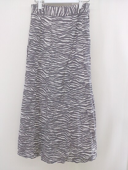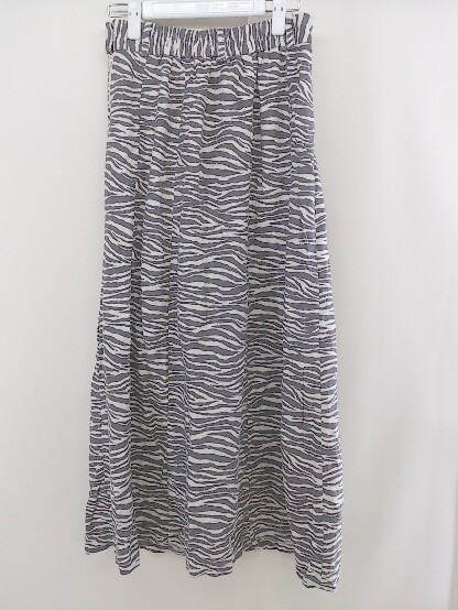 ◇ LOWRYS FARM ローリーズファーム リネン混 ロング フレア スカート サイズF グレー オフホワイト レディース
